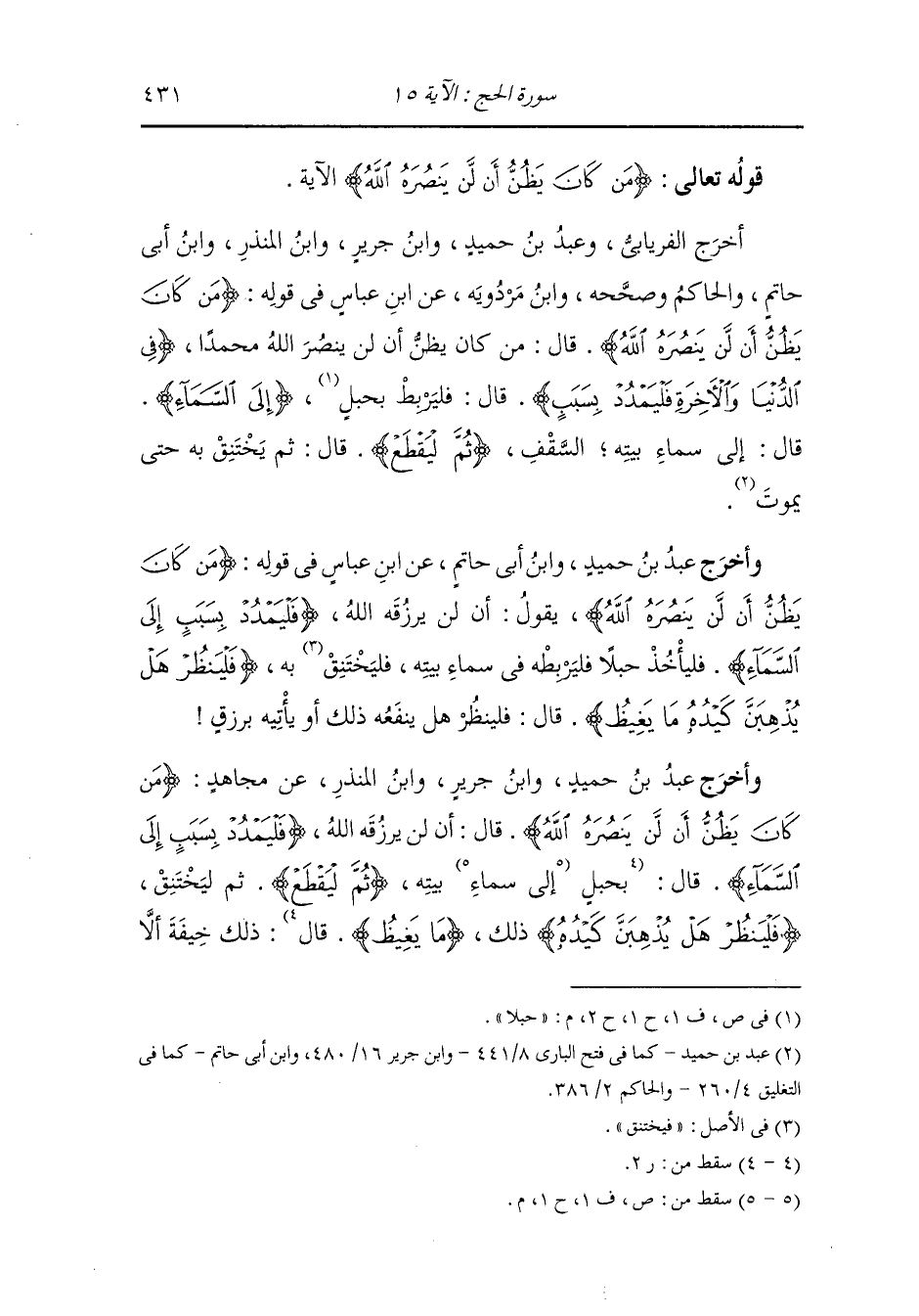 وأخرج ابن أبي حاتم ، وَابن مردويه والبيهقي في "سُنَنِه" عن ابن الزبير قال : قال رسول الله صلى الله عليه وسلم من لبس الحرير في الدنيا لم يلبسه في الآخرة ، قال ابن الزبير من قبل نفسه : ومن لم يلبسه في الآخرة لم يدخل الجنة لأن الله تعالى قال : {ولباسهم فيها حرير}.