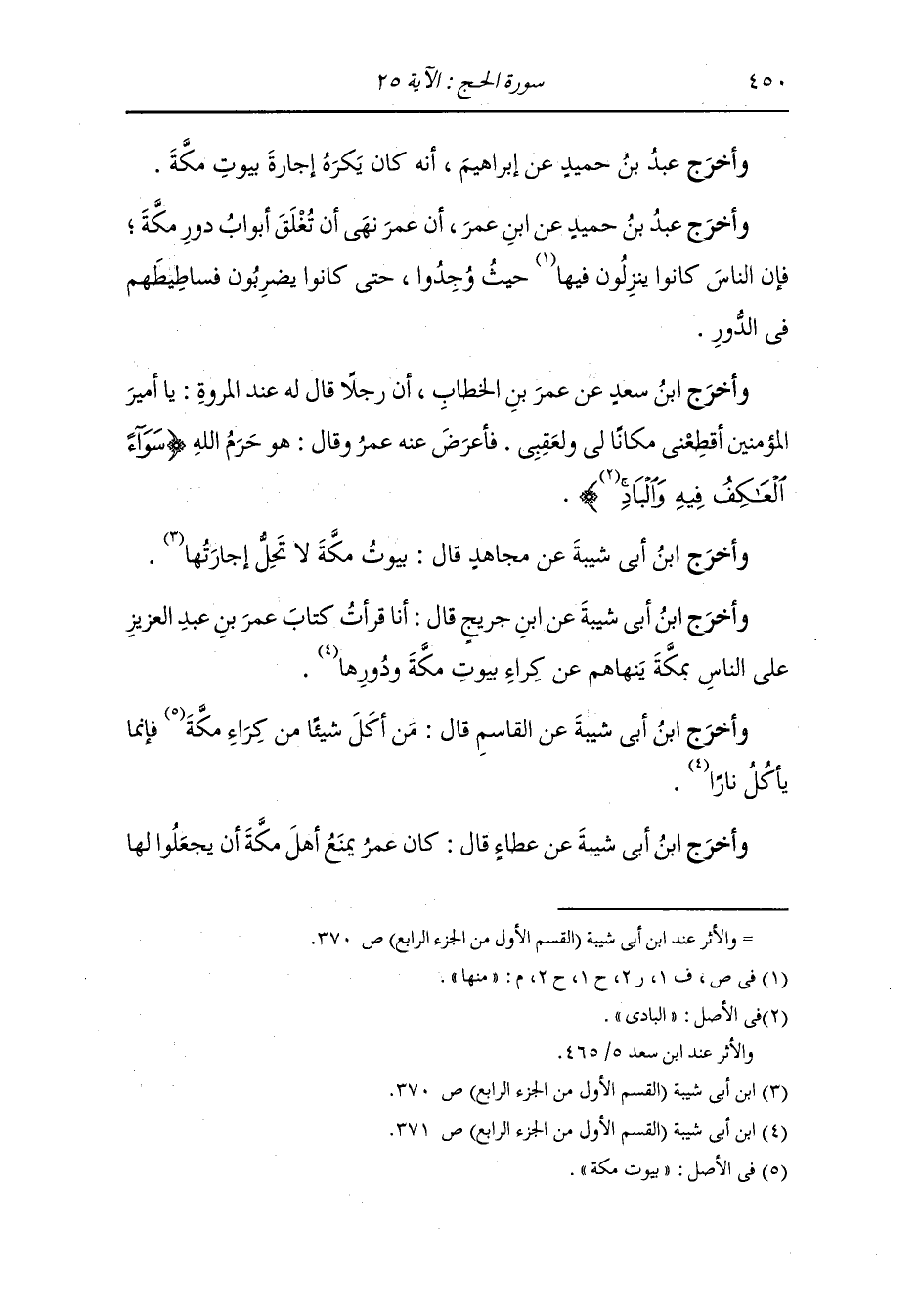 وأخرج ابن جرير ، وَابن المنذر والحاكم والبيهقي عن ابن عباس قال : لما بنى إبراهيم البيت أوحى الله اليه أن أذن في الناس بالحج ، فقال : ألا إن ربكم قد اتخذ بيتا وأمركم أن تحجوه ، فاستجاب له ماسمعه من حجر أو شجر أو أكمة أو تراب أو شيء ، فقالوا : لبيك اللهم لبيك.