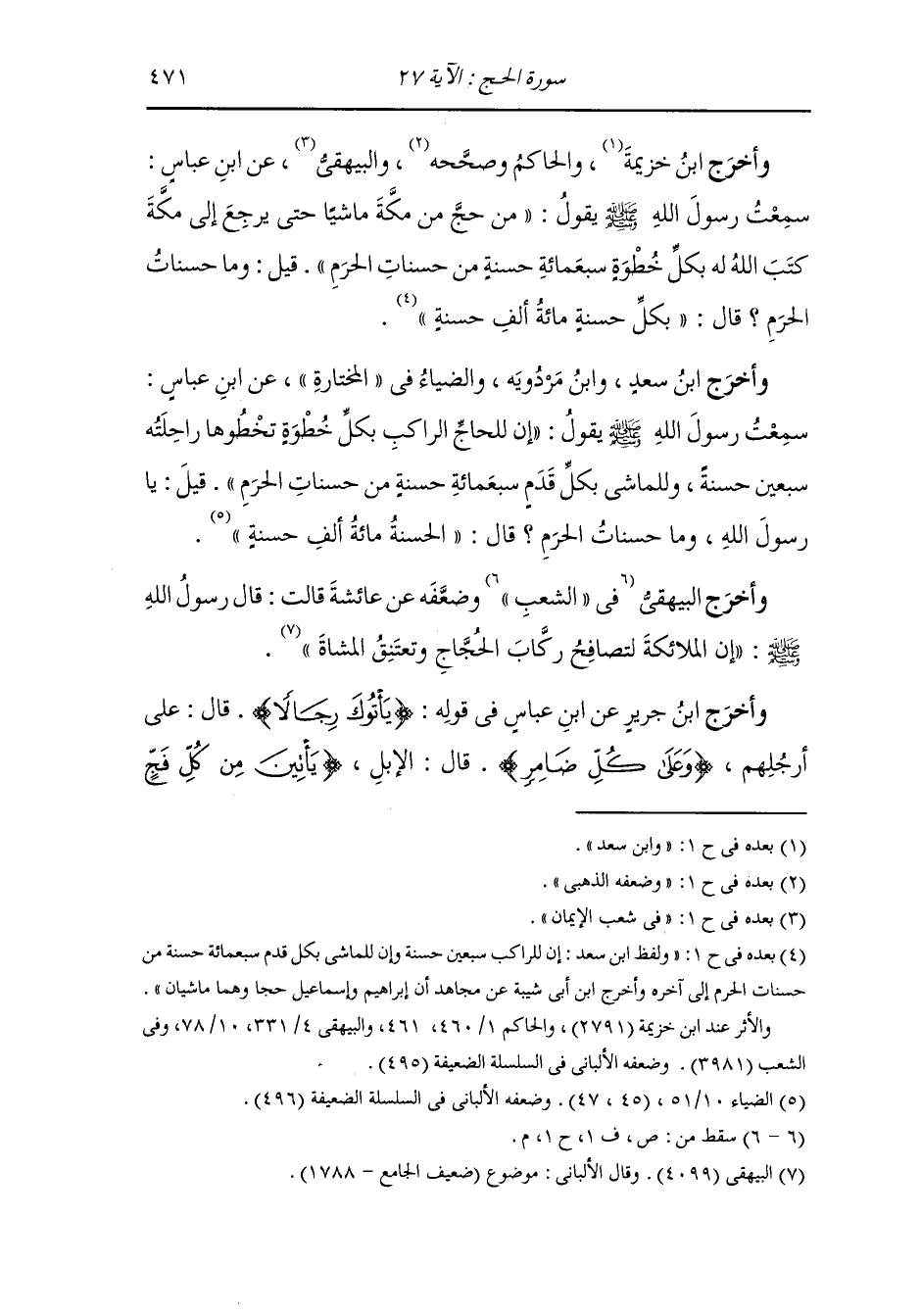 أخرج ابن أبي شيبة ، وعَبد بن حُمَيد ، وَابن جَرِير ، وَابن المنذر ، وَابن أبي حاتم عن مجاهد في قوله {ذلك ومن يعظم حرمات الله} قال : الحرمة الحج والعمرة وما نهى الله عنه من معاصيه كلها.