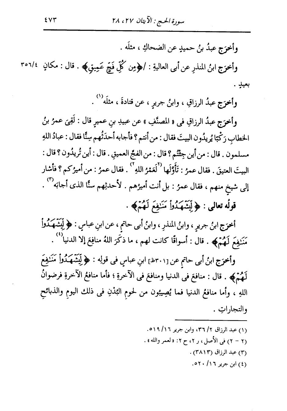 وأخرج عبد الرزاق والفريابي وسعيد بن منصور ، وعَبد بن حُمَيد ، وَابن جَرِير ، وَابن المنذر والطبراني والخرائطي في مكارم الاخلاق والبيهقي عن ابن مسعود قال : شهادة الزور تعدل بالشرل بالله ، ثم قرأ {فاجتنبوا الرجس من الأوثان واجتنبوا قول الزور}.