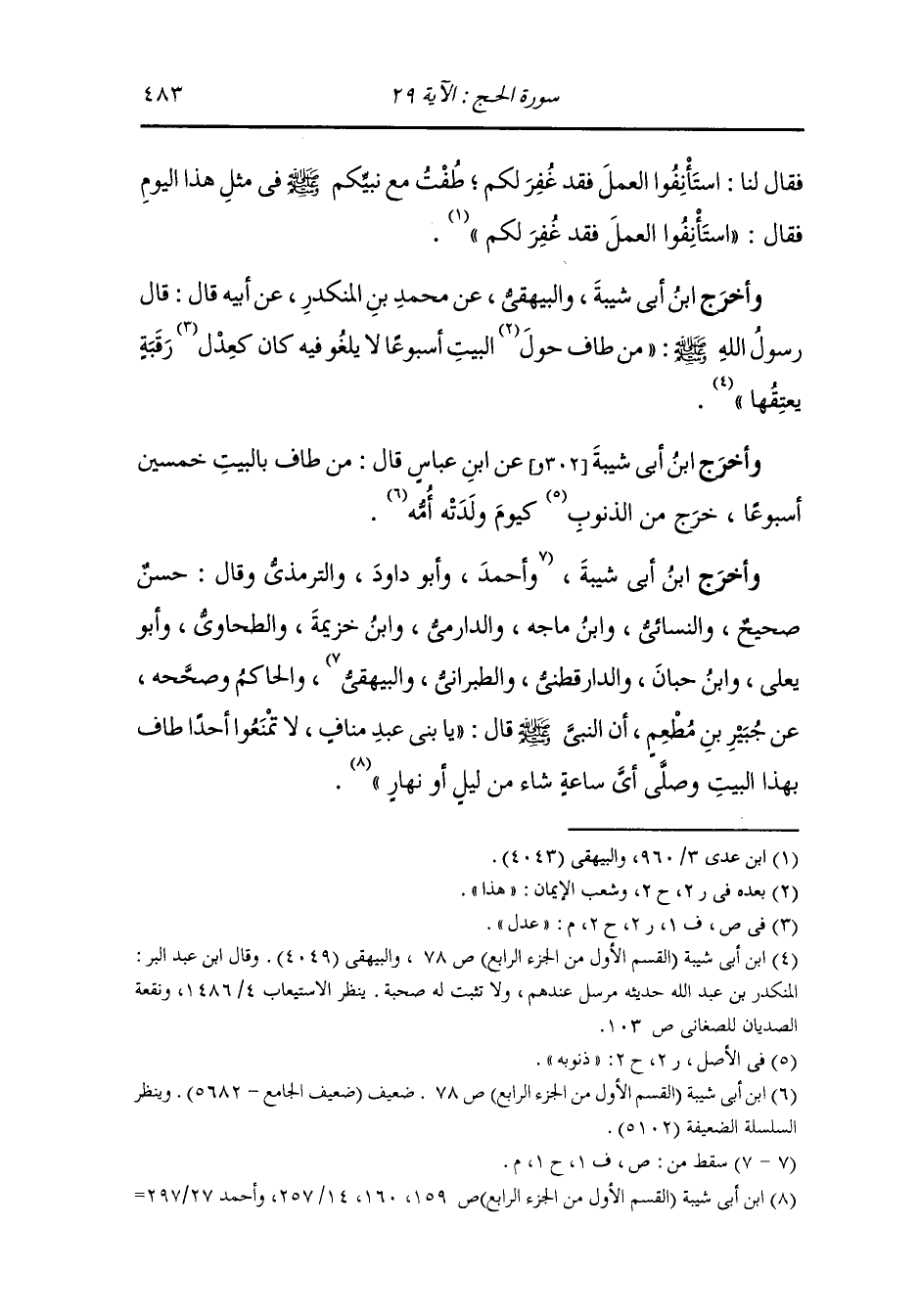 وأخرج أحمد ، وعَبد بن حُمَيد ، وَابن ماجة والطبراني والحاكم وصححه والبيهقي في الشعب عن زيد بن أرقم رضي الله عنه قال : قلنا يارسول الله ما هذه الضاحي قال : سنة أبيكم إبراهيم قال : فما لنا فيها يا رسول الله قال : بكل شعرة حسنة قالوا : فالصوف قال : بكل شعرة من