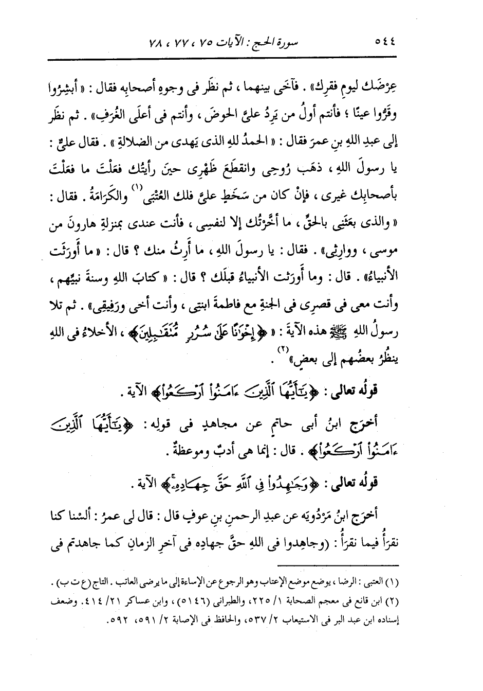 وأخرج ابن سعد ، وَابن أبي شيبة وأحمد في الزهد عن مجاهد عن عبد الله بن الزبير ، أنه كان يقوم للصلاة كأنه عود وكان أبو بكر رضي الله عنه يفعل ذلك ، وقال مجاهد : هو الخشوع في الصلاة.