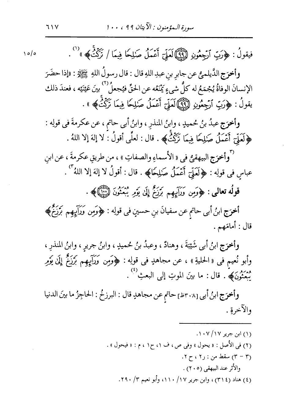 وأخرج الحاكم عن أبي وائل قال : حججت أنا وصاحب لي ، وَابن عباس على الحجن فجعل يقرأ سورة النور ويفسرها فقال صاحبي : سبحان الله ، ماذا يخرج من رأس هذا الرجل لو سمعت هذا الترك لأسلمت.
