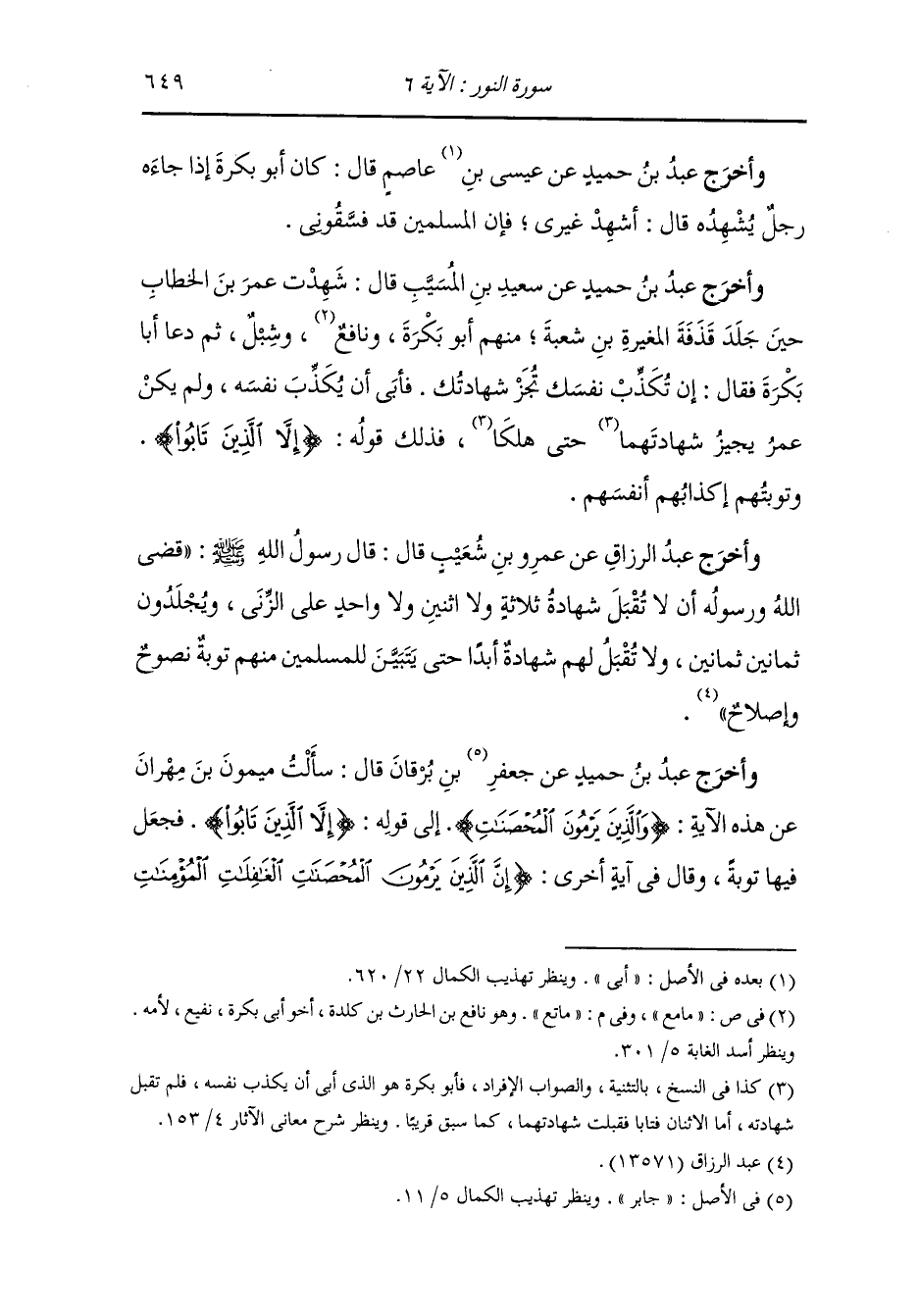 بشيء من ذلك وهو يريبني في وجعي أني لا أعرف من رسول الله صلى الله عليه وسلم اللطف الذي كنت أرى منه حين أشتكى انما يدخل علي فيسلم ثم يقولك كيف تيكم ثم ينصرف ، فذاك الذي يريبني ولا أشعر بالشر حتى خرجت بعدما نقهت وخرجت معي أم مسطح قبل المناصع وهي متبرزنا وكنا لا نخرج إلا ليلا إلى ليل وذلك قبل أن نتخذ الكنف قريبا من بيوتنا وأمرنا أمر العرب الأول في التبرز قبل الغائط ، فكنا نتاذى بالكنف أن نتخذها عند بيوتنا فانطلقت انا وأم مسطح فأقبلت أنا وأم مسطح قبل بيتي قد أشرعنا من ثيابنا فعثرت أم مسطح في مرطها فقالت : تعس مسطح فقلت لها : بئس ما قلت اتسبين رجلا شهد بدرا قالت : أي هنتاه أو لم تسمعي ما قال قلت : وما قال ، فاخبرتني بقول أهل الافك فازددت مرضا على مرضي ، فلما رجعت إلى بيتي دخل علي رسول الله صلى الله عليه وسلم فسلم ثم قال : كيف تيكم فقلت : أتأذن لي أن آتي أبوي قالت : - وأنا حينئذ أريد أن أستيقن الخبر من قبلهما - قالت : فاذن لي رسول الله صلى الله عليه وسلم فجئت لابوي فقلت لامي يا امتاه ما يتحدث الناس قالت يا بنية هوني عليك فو الله لقلما كانت امرأة