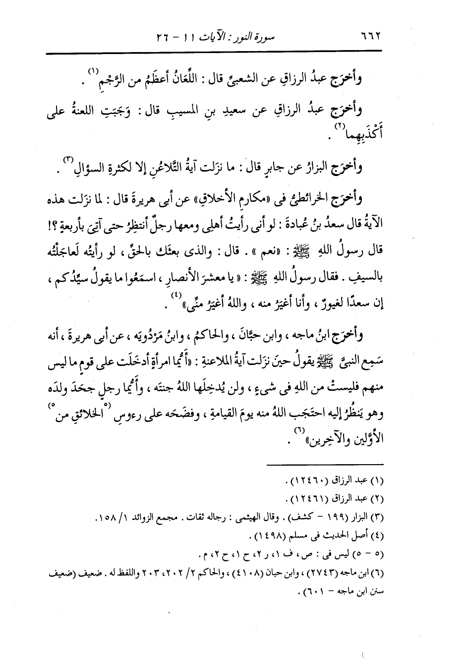فحملت معي السطل وفيه ماء فوقع السطل منها فقالت : تعس مسطح قالت لها عائشة - سبحان الله - تسبين رجلا من أهل بدر وهو ابنك قالت لها أم مسطح : انه سال بك السيل وأنت لا تدرين واخبرتها بالخبر ، قالت : فلما اخبرتني اخذتني الحمى بنافض مما كان ولم أجد المذهب ، قالت عائشة : وقد كنت أرى من النَّبِيّ صلى الله عليه وسلم قبل ذلك جفوة ولم ادر من أي شيء هو فلما حدثتني أم مسطح علمت أن جفوة رسول الله صلى الله عليه وسلم من ذاك فلما دخل علي قلت : تأذن لي أن أذهب إلى أهلي قال : اذهبي فخرجت عائشة حتى أتت أباها فقال لها : مالك قلت : اخرجني رسول الله صلى الله عليه وسلم من بيته قال لها أبو بكر : فأخرجك رسول الله صلى الله عليه وسلم من بيته وآويك انا والله لا آويك حتى يأمر رسول الله صلى الله عليه وسلم فأمره رسول الله صلى الله عليه وسلم أن يؤويها فقال لها أبو بكر : والله ما قيل لنا هذا في الجاهلية قط فكيف وقد اعزنا الله بالاسلام فبكت عائشة وامها أم رومان وأبو بكر وعبد الرحمن وبكى معهم أهل الدار ، وبلغ ذلك النَّبِيّ صلى الله عليه وسلم فصعد المنبر فحمد الله واثنى عليه فقال : أيها الناس من يعذرني ممن يؤذيني فقام إليه سعد بن معاذ فسل سيفه وقال :