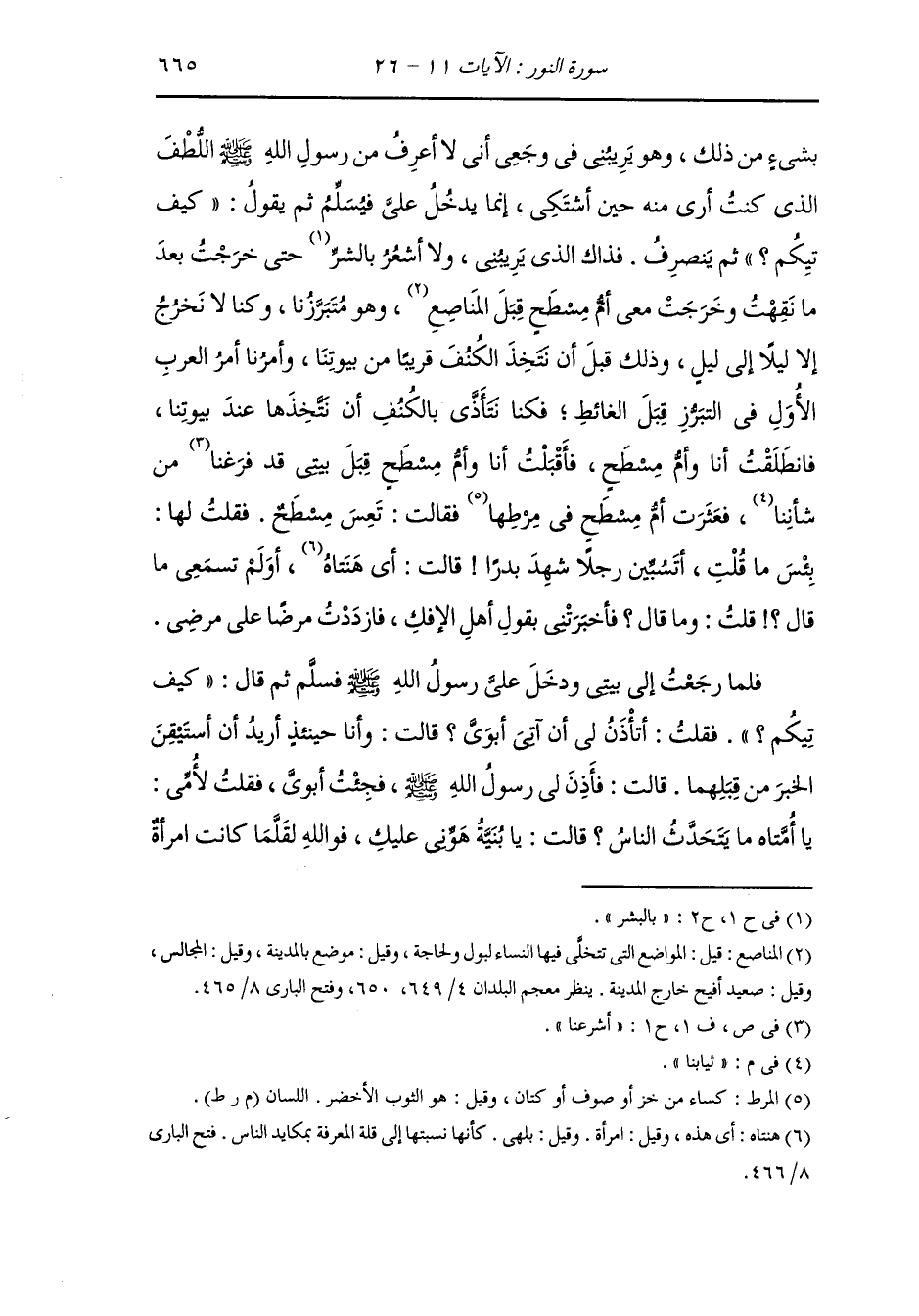 وأخرج الطبراني ، وَابن مردويه عن أبي اليسر الانصاري أن النَّبِيّ صلى الله عليه وسلم قال لعائشة : يا عائشة قد أنزل الله عذرك قالت : بحمد الله لا بحمدك ، فخرج رسول الله صلى الله عليه وسلم من عند عائشة فبعث إلى عبد الله بن أبي فضربه حدين وبعث إلى مسطح وحمنة فضربهم.