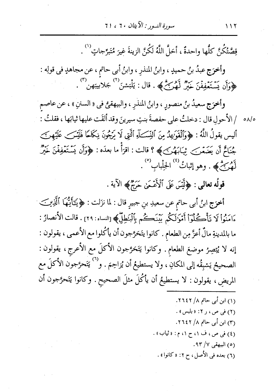 دخلت على حفصة بنت سيرين وقد ألقت عليها ثيابها فقلت أليس يقول الله {والقواعد من النساء اللاتي لا يرجون نكاحا فليس عليهن جناح أن يضعن ثيابهن} قال : اقرأ ما بعده {وأن يستعففن خير لهن} وهو ثياب الجلباب.