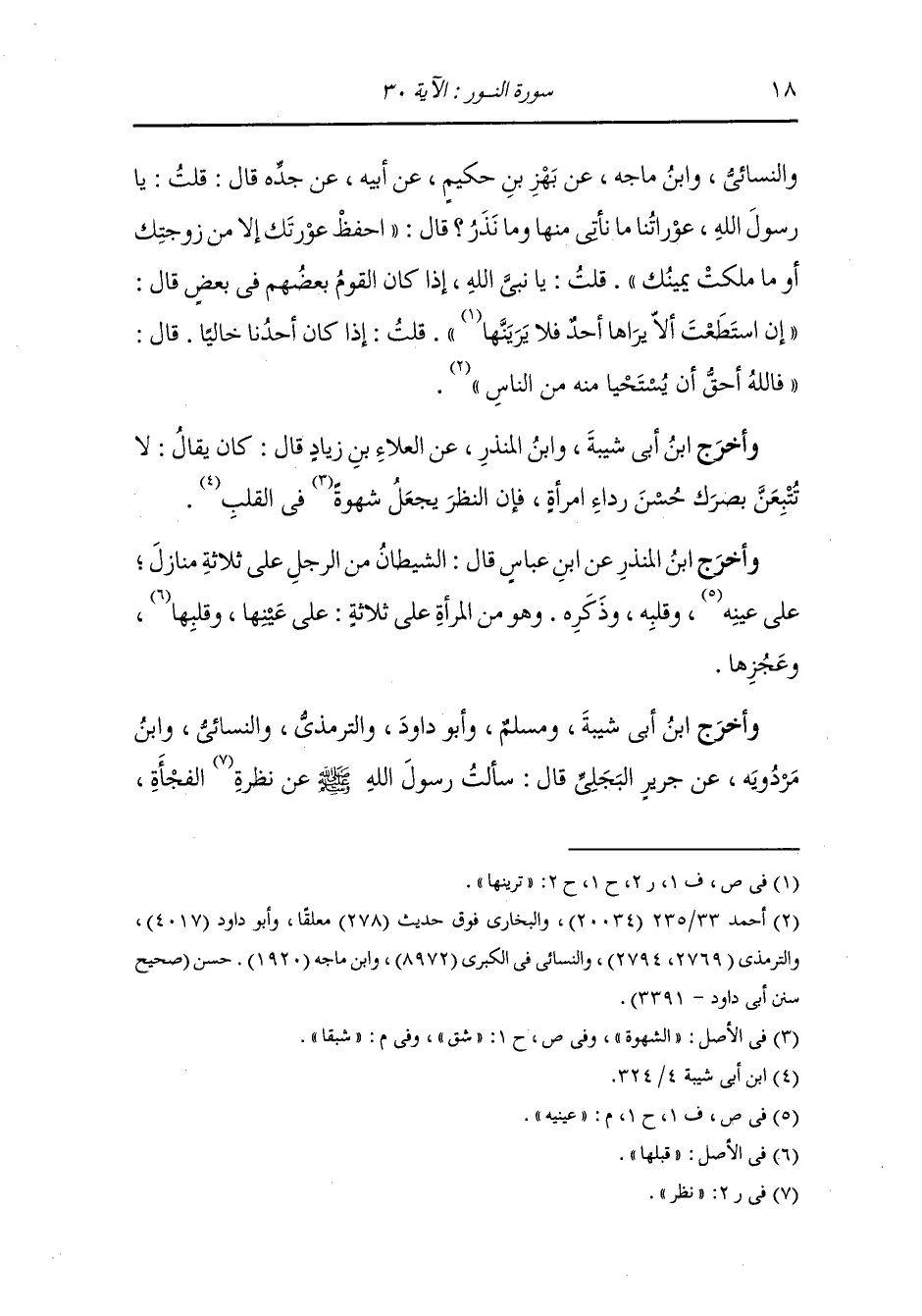 وأخرج ابن أبي شيبة ومسلم وأبو داود والترمذي والنسائي ، وَابن مردويه عن جرير البجلي قال : سألت رسول الله صلى الله عليه وسلم عن نظرة الفجاة