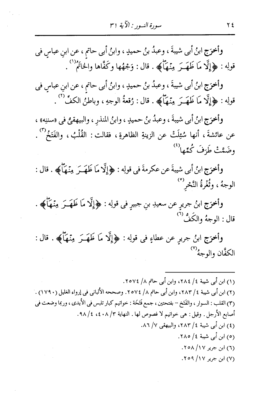 وأخرج ابن جرير عن سعيد بن جبير في قوله {إلا ما ظهر منها} قال : الوجه والكف.