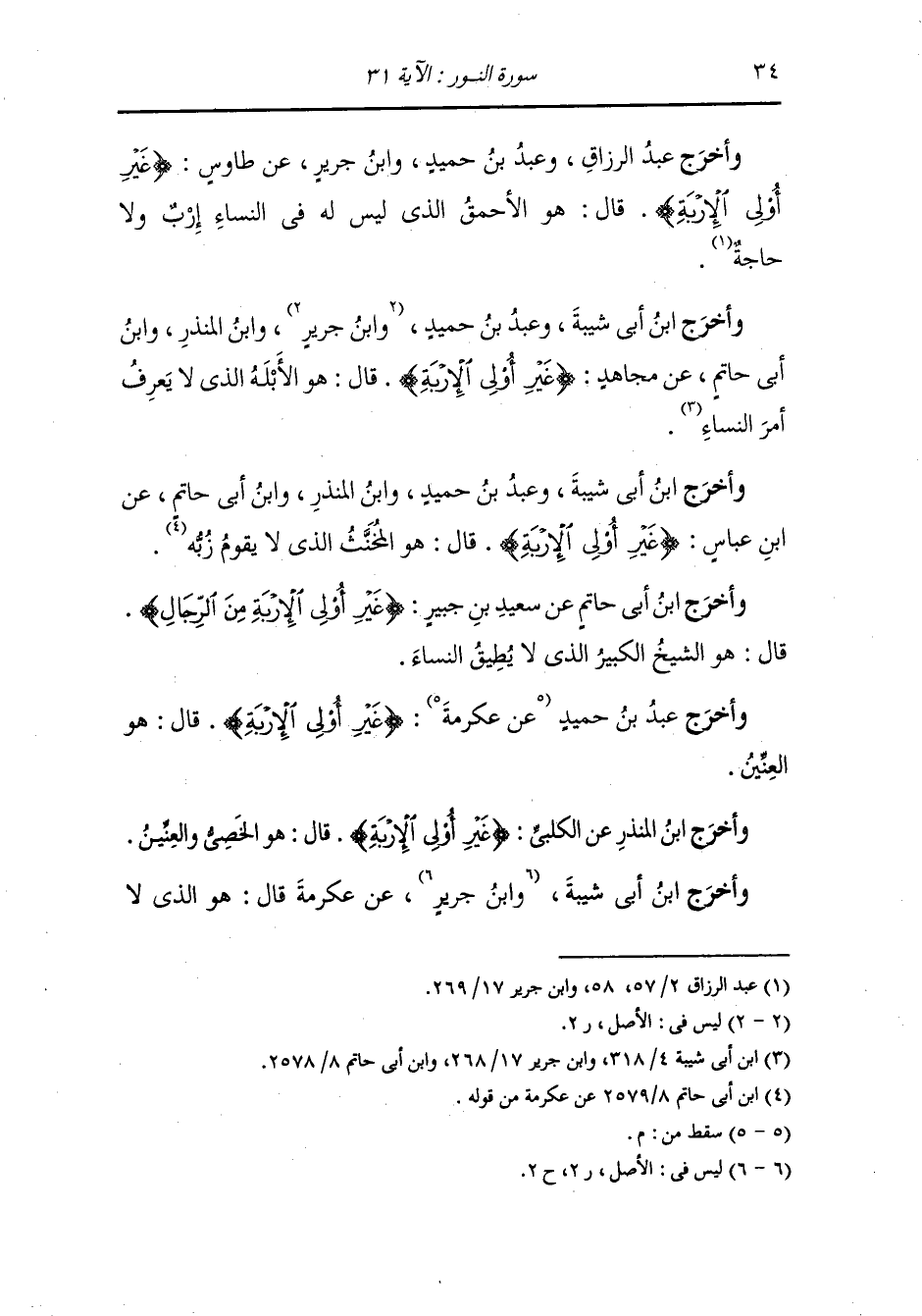 وأخرج عبد الرزاق ، وعَبد بن حُمَيد ، وَابن جَرِير ، عَن طاووس {غير أولي الإربة} قال : هو الأحمق الذي ليس له في النساء أرب ولا حاجة.