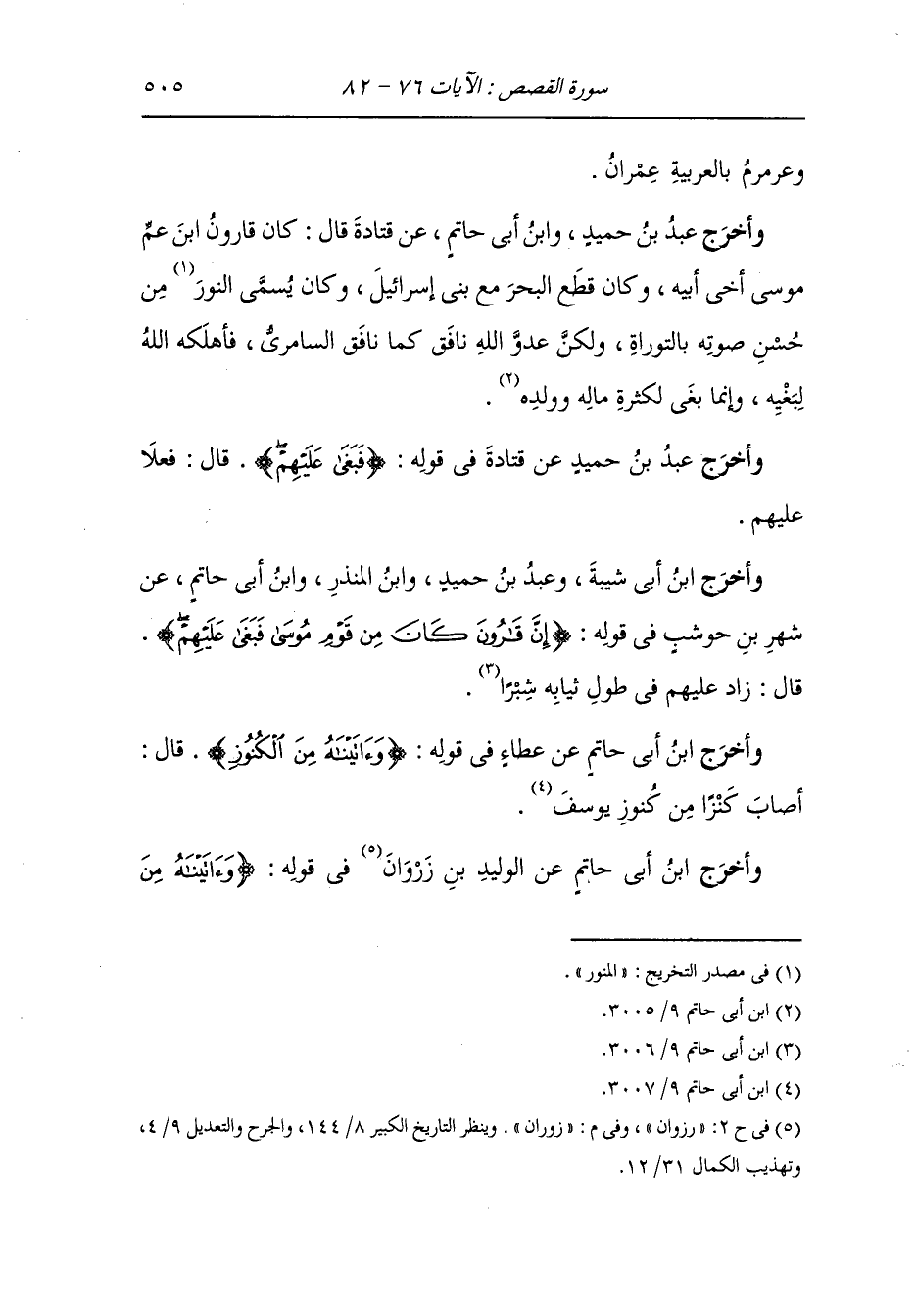 وأخرج الفريابي ، وَابن أبي شيبه ، وعَبد بن حُمَيد ، وَابن المنذر ، وَابن أبي حاتم عن خيثمة رضي الله عنه قال : كانت مفاتيح كنوز قارون من جلود كل مفتاح على خزانة على حدة فاذا ركب حملت المفاتيح على سبعين بغلا أغر محجلا.