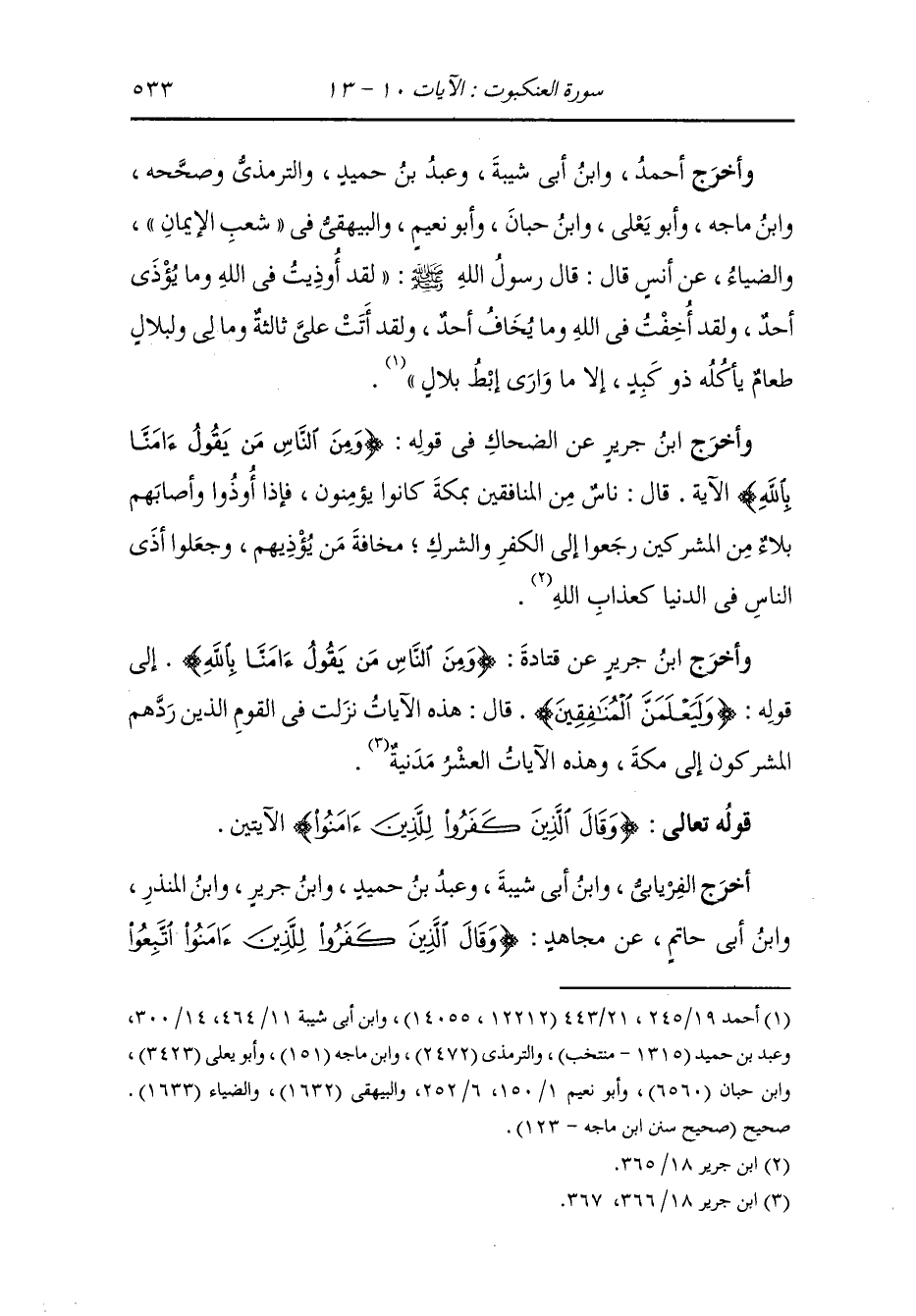 وأخرج الفريابي ، وعَبد بن حُمَيد عن مجاهد رضي الله عنه {وليحملن أثقالهم وأثقالا مع أثقالهم} قال : هي مثل التي في النحل {ليحملوا أوزارهم كاملة يوم القيامة ومن أوزار الذين يضلونهم} النحل الآية 25.