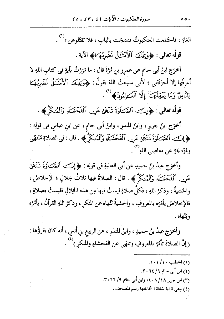 وأخرج ابن أبي حاتم والطبراني ، وَابن مردويه عن ابن عباس رضي الله عنهما قال : قال رسول الله صلى الله عليه وسلم من لم تنهه صلاته عن الفحشاء والمنكر لم يزدد بها من الله إلا بعدا.