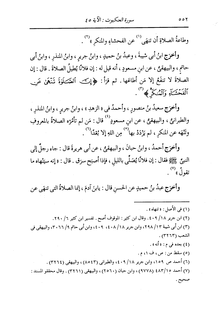 وأخرج ابن جرير عن ابن عمر رضي الله عنهما {إن الصلاة تنهى عن الفحشاء والمنكر} قال : القرآن الذي يقرأ في المساجد.