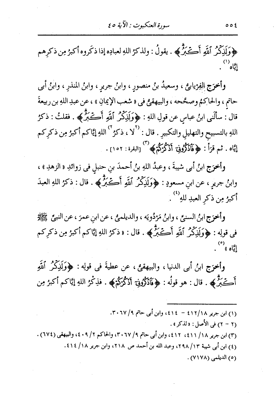 وأخرج عَبد بن حُمَيد ، وَابن جَرِير ، وَابن المنذر ، وَابن أبي حاتم عن مجاهد رضي الله عنه {ولذكر الله أكبر} قال : لذكر الله عبده أكبر من ذكر العبد ربه في الصلاة وغيرها.