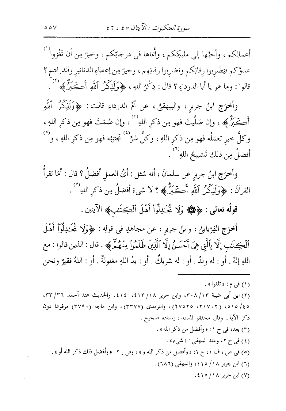وأخرج ابن أبي حاتم عن ابن عباس رضي الله عنهما في قوله {ولا تجادلوا أهل الكتاب إلا بالتي هي أحسن} قال : بلا اله إلا الله.