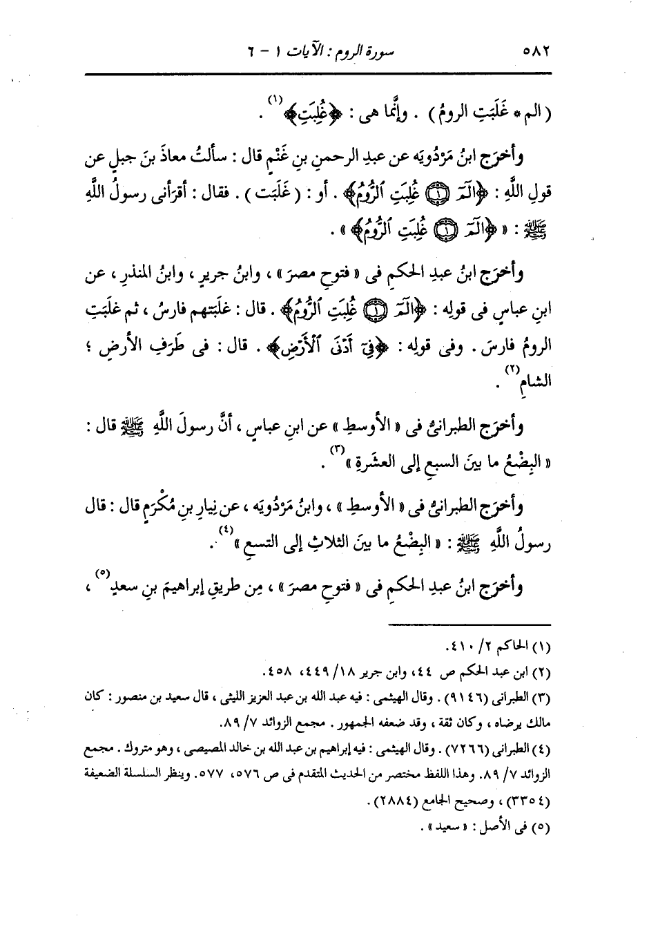 وأخرج ابن جرير عن مجاهد رضي الله عنه {الم غلبت الروم} إلى قوله {أكثر الناس لا يعلمون} قال : ذكر غلبة فارس اياهم وادالة الروم على فارس وفرح المؤمنون بنصر الله أهل الكتاب على فارس من أهل الاوثان.
