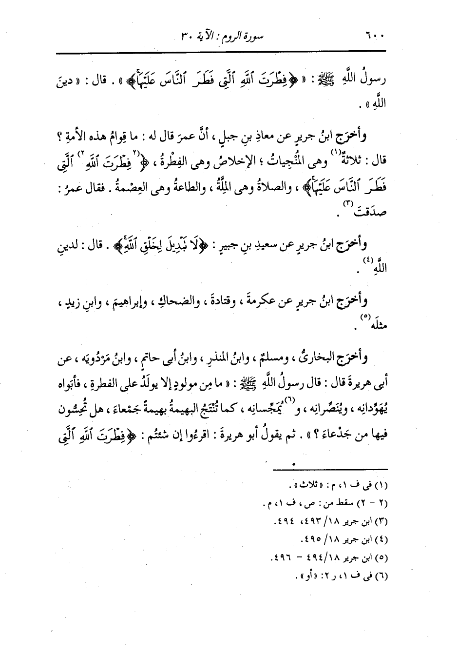 وأخرج مالك وأبو داود ، وَابن مردويه عن أبي هريرة رضي الله عنه قال : قال رسول الله صلى الله عليه وسلم كل مولود يولد على الفطرة فأبواه يهودانه وينصرانه كما تنتج الابل من بهيمة جمعاء هل تحس من جدعاء) قالوا : يا رسول الله أفرأيت من يموت وهو صغير قال : الله أعلم بما كانوا عاملين.