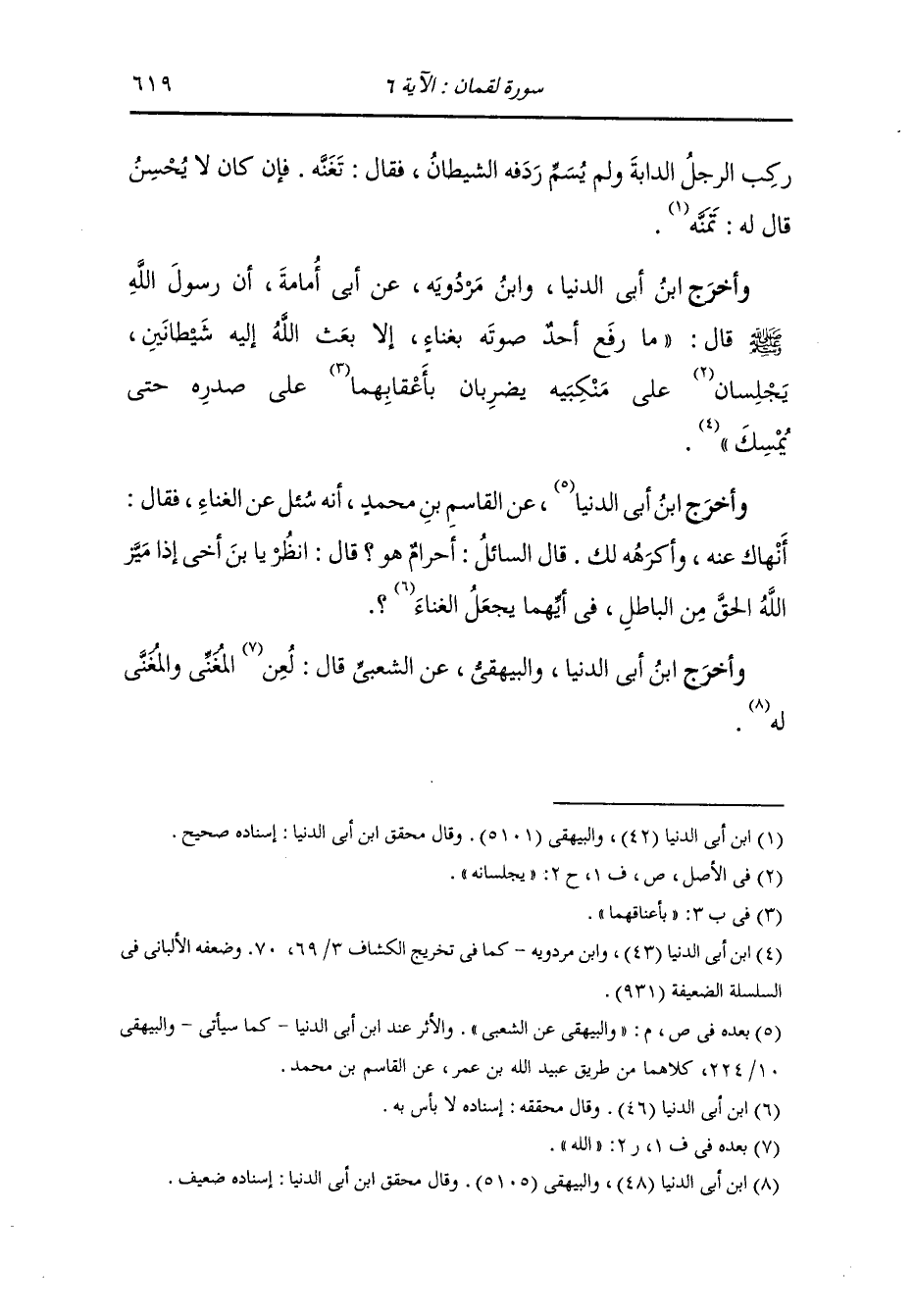 وأخرج ابن أبي الدنيا والبيهقي عن فضيل بن عياض قال : الغناء رقية الزنا.