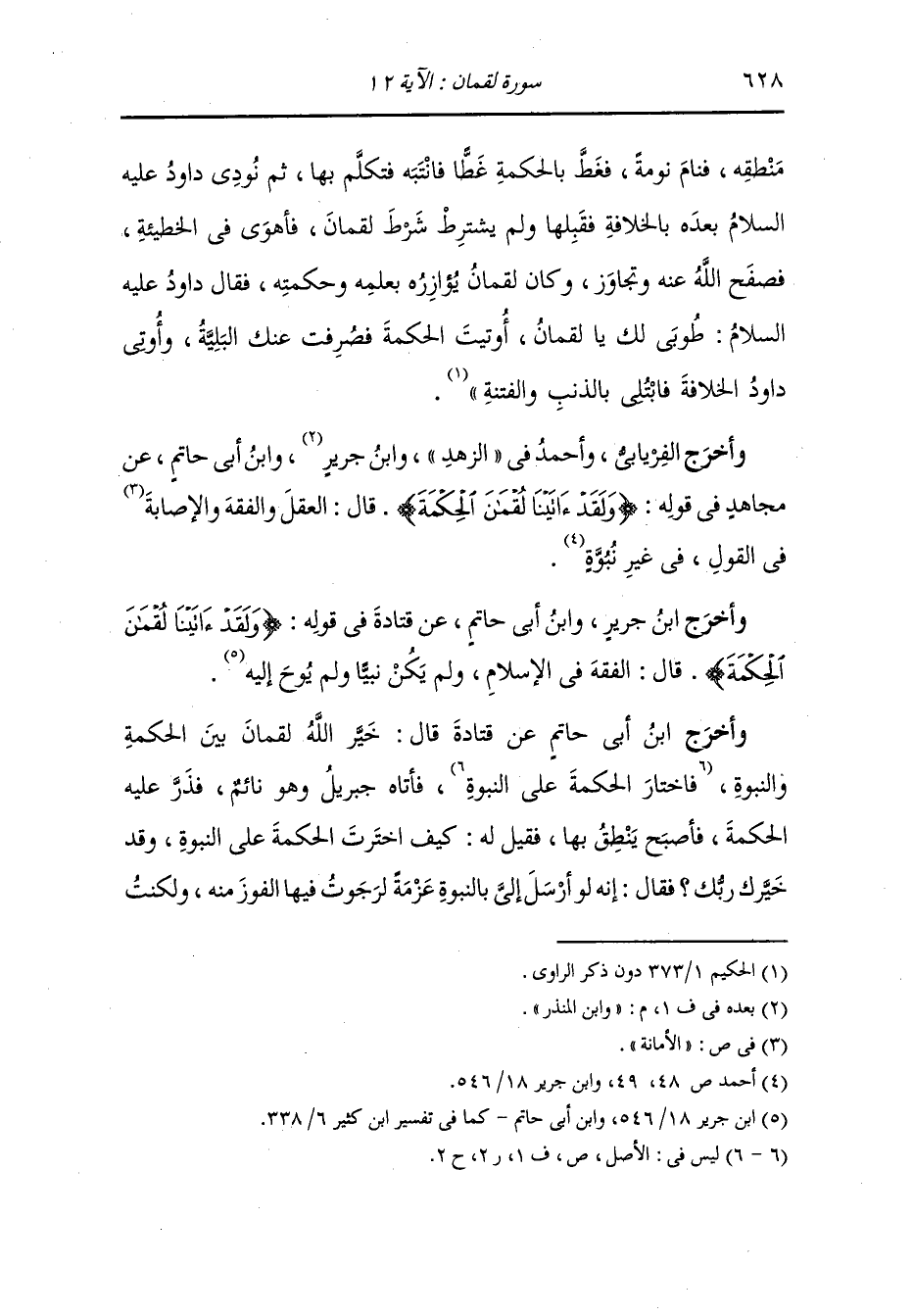 وأخرج ابن أبي حاتم عن ليث رضي الله تعالى عنه قال : كانت حكمة لقمان عليه السلام نبوة.