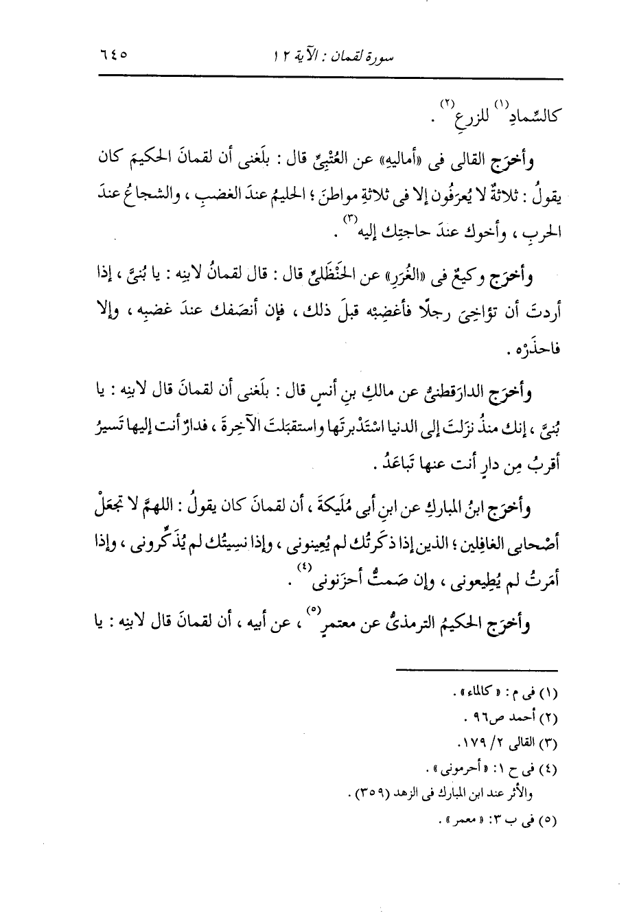 وأخرج عبد الرزاق عن عمر بن عبد العزيز رضي الله عنه قال : قال لقمان عليه السلام : اذا جاءك الرجل وقد سقطت عيناه فلا تقض له حتى يأتي خصمه قال : يقول لعله أن يأتي وقد نزع أربعة أعين.