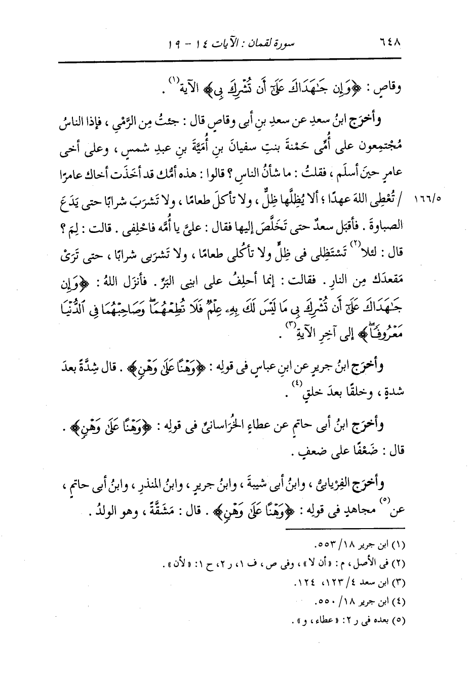 وأخرج ابن جرير ، وَابن أبي حاتم عن مجاهد رضي الله عنه في قوله {وهنا على وهن} قال : الولد على وهن قال : الوالدة وضعفها.
