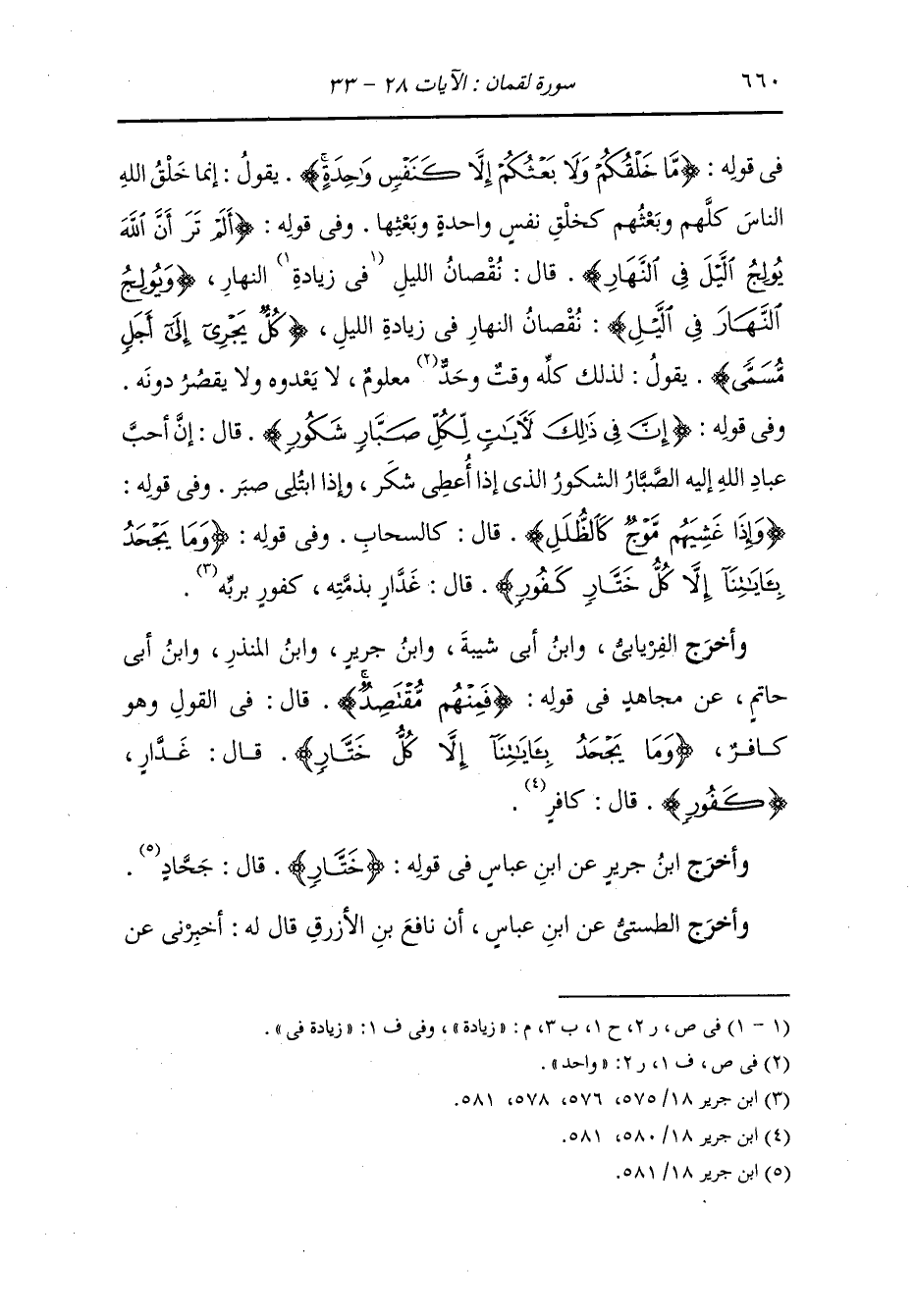 قوله {كل ختار كفور} قال : الجبار ، الغدار ، الظلوم ، الغشوم ، {الكفور} الذي يغطي النعمة قال : وهل تعرف العرب ذلك قال : نعم ، أما سمعت قول الشاعر وهو يقول : لقد علمت واستيقنت ذات نفسها * بان لا تخاف الدهر صرمي ولا ختري.
