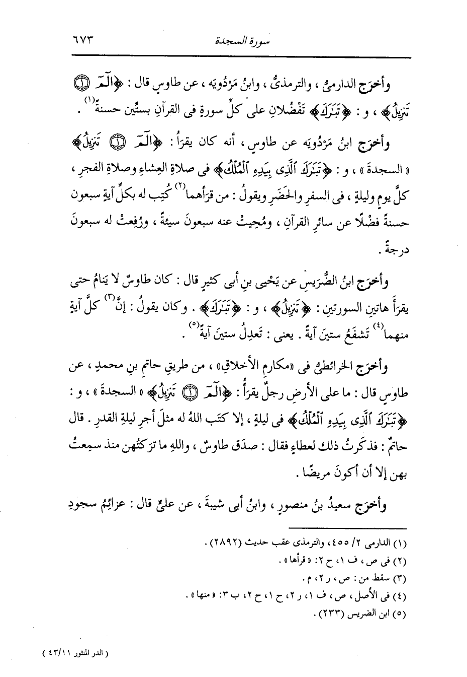 وأخرج الفريابي ، وَابن جَرِير ، وَابن أبي حاتم والحاكم وصححه عن ابن عباس رضي الله عنهما في قوله {يدبر الأمر من السماء إلى الأرض ثم يعرج إليه في يوم كان مقداره ألف سنة} قال : من الايام الستة التي خلق الله فيها السموات والارض.