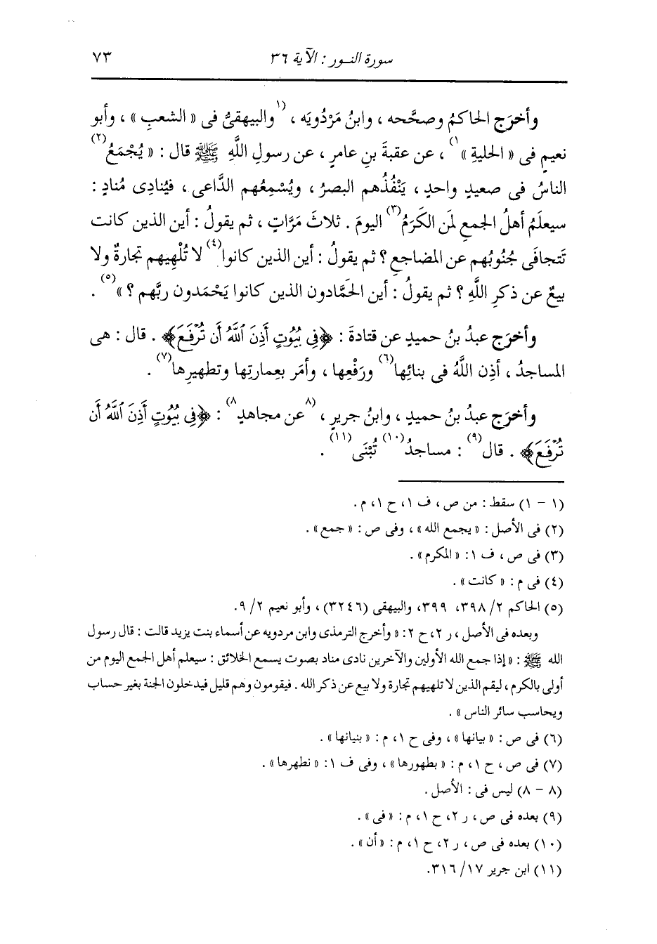 وأخرج عَبد بن حُمَيد عن قتادة {في بيوت أذن الله أن ترفع} قال : هي المساجد ، أذن الله في بنيانها ورفعها وأمر بعمارتها وبطهورها.