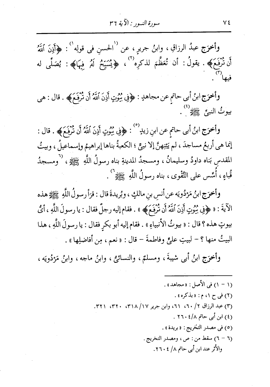 وأخرج ابن أبي حاتم عن ابن زيد {في بيوت أذن الله أن ترفع} قال : إنما هي أربع مساجد لم يبنهن إلا نبي ، الكعبة بناها إبراهيم واسمعيل وبيت المقدس بناه داود وسليمان ومسجد المدينة بناه رسول الله صلى الله عليه وسلم ومسجد قباء أسس على التقوى بناه رسول الله صلى الله عليه وسلم.