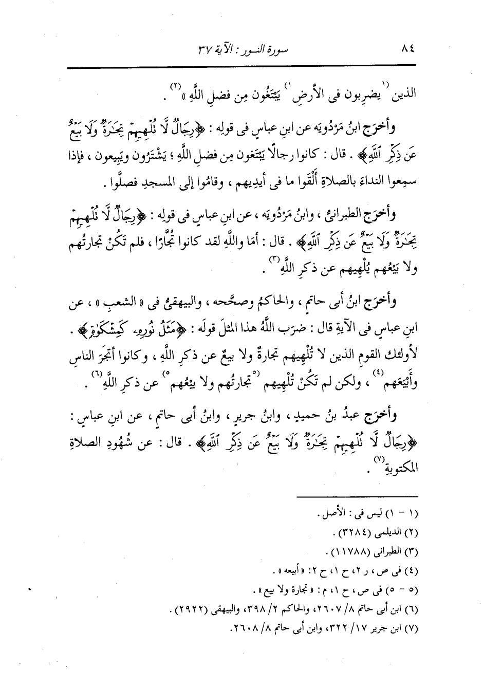 وأخرج الطبراني ، وَابن مردويه عن ابن عباس في قوله {رجال لا تلهيهم تجارة ولا بيع عن ذكر الله} قال : أما والله ولقد كانوا تجارا فلم تكن تجارتهم ولا بيعهم يلهيهم عن ذكر الله.