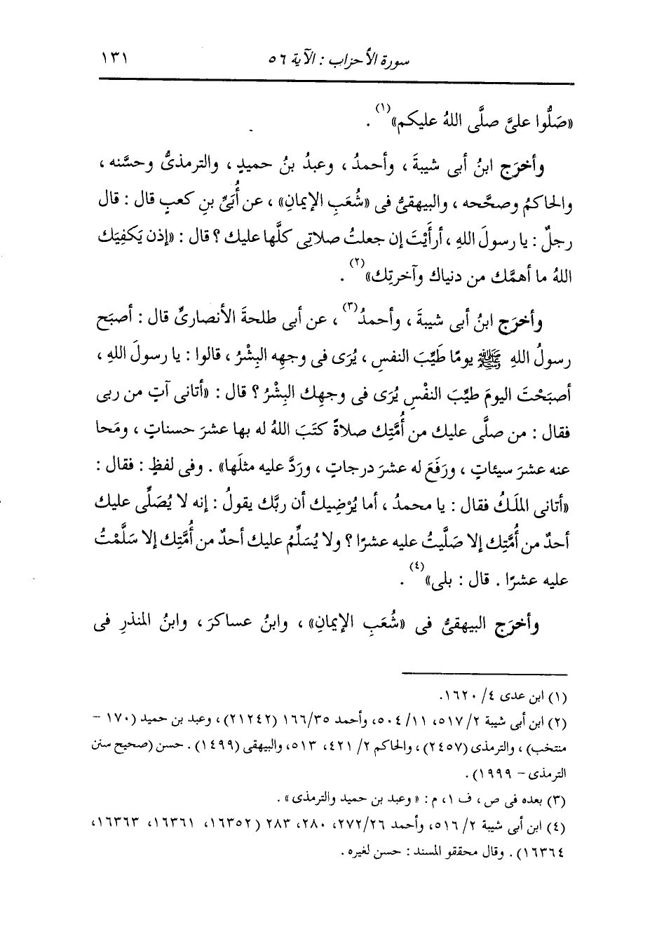 وأخرج الاصفهاني في الترغيب والديلمي عن أنس رضي الله عنه قال : قال رسول الله صلى الله عليه وسلم ان أنجاكم يوم القيامة من أهوالها ومواطنها أكثركم علي في دار الدنيا صلاة انه قد كان في الله وملائكته كفاية ولكن خص المؤمنين بذلك ليثيبهم عليه.