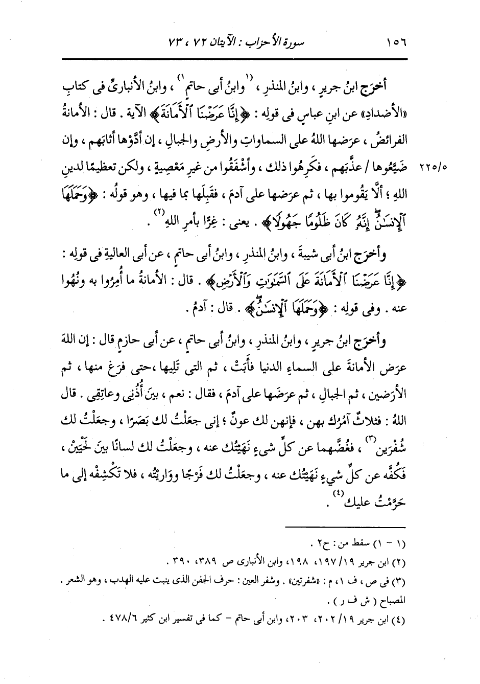 - قوله تعالى : إنا عرضنا الأمانة على السموات والأرض والجبال فأبين أن يحملنها وأشفقن منها وحملها الإنسان إنه كان ظلوما جهولا * ليعذب الله المنافقين والمنافقات والمشركين والمشركات ويتوب الله على المؤمنين والمؤمنات وكان الله غفورا رحيما.
