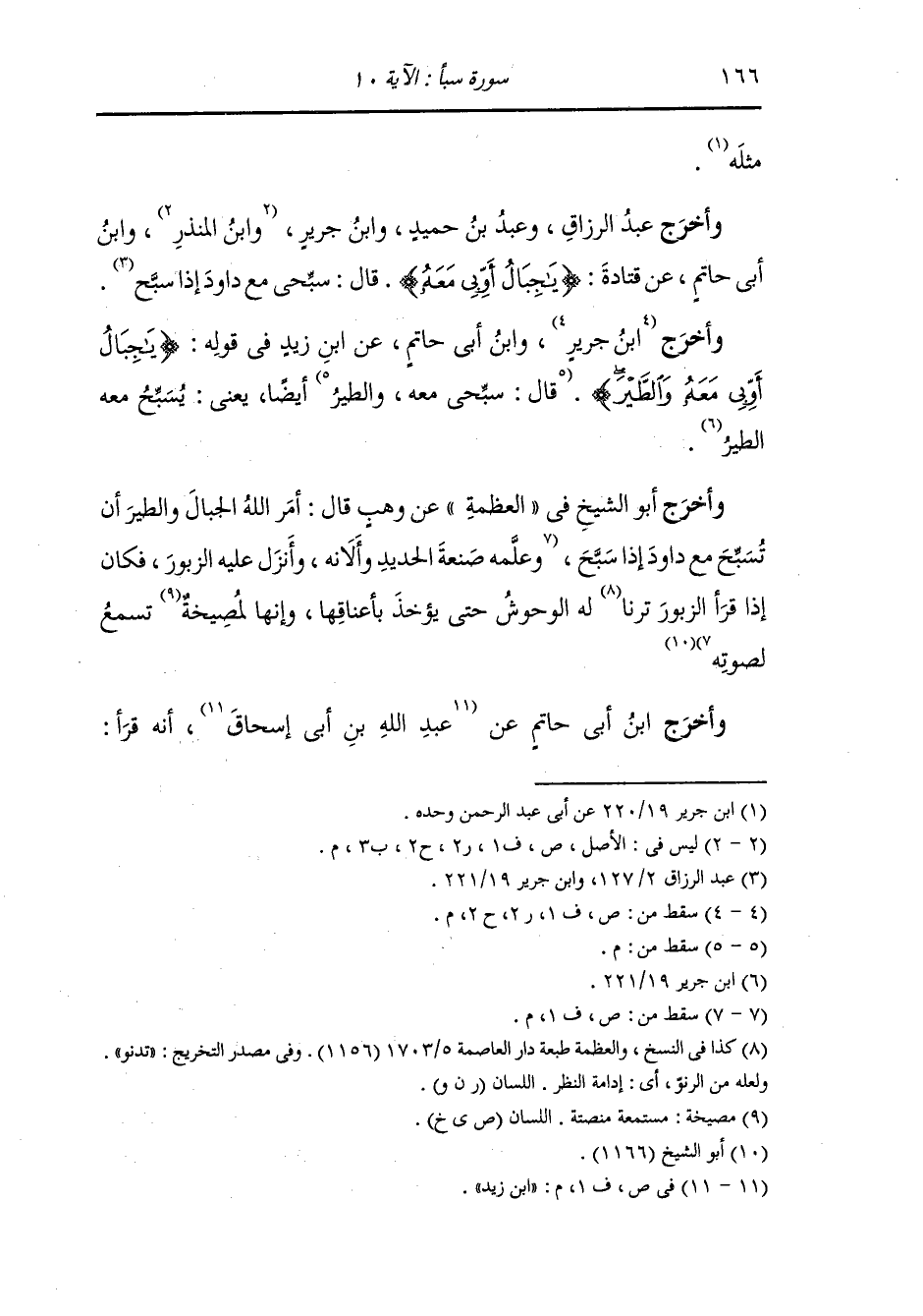 أخرج ابن أبي شيبه في المصنف ، وَابن جَرِير عن ابن عباس رضي الله عنهما في قوله {أوبي معه} قال : سبحي معه.