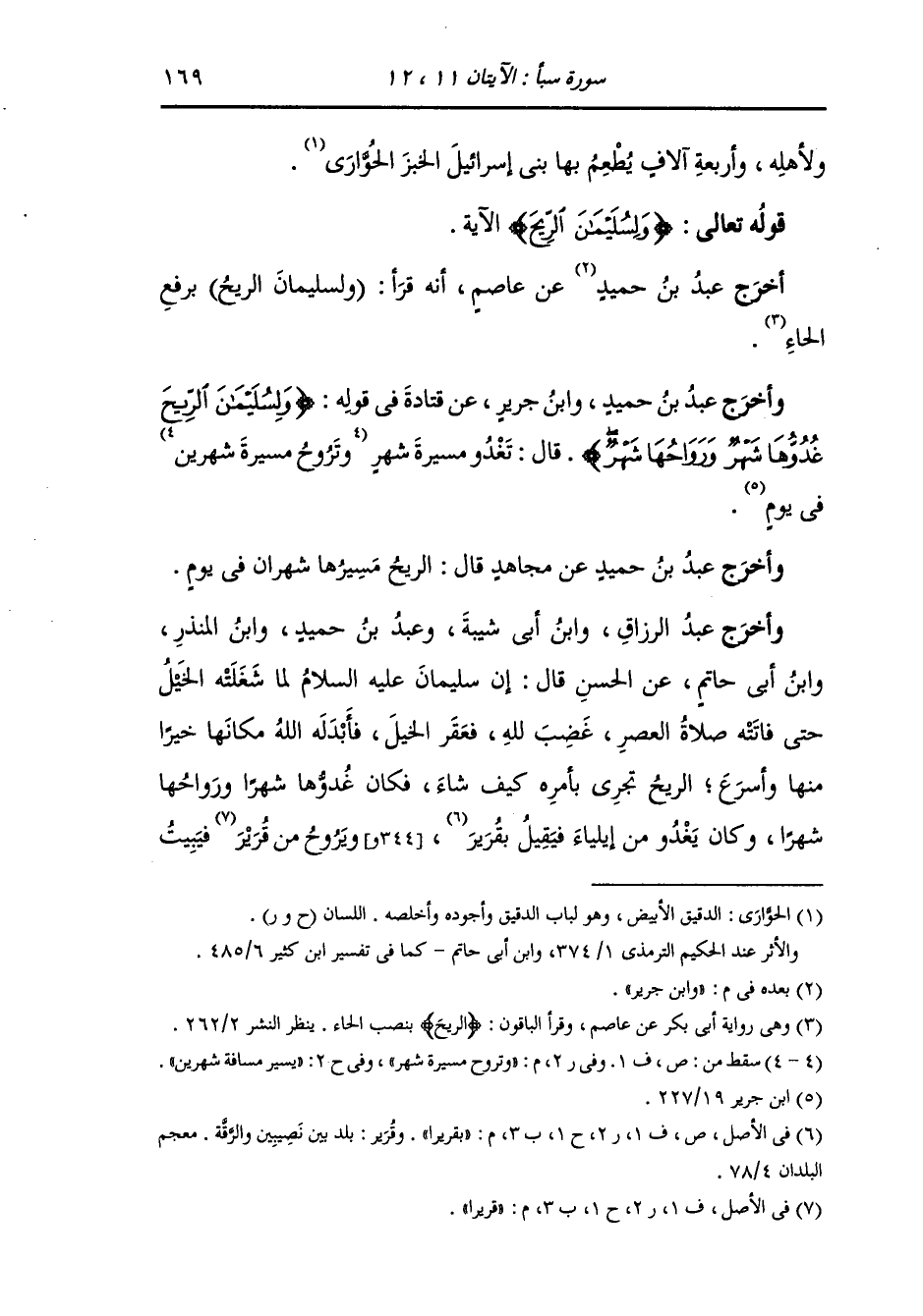 وأخرج ابن جرير ، وَابن المنذر ، وَابن أبي حاتم من طرق عن ابن عباس رضي الله عنهما في قوله {وقدر في السرد} قال : حلق الحديد.