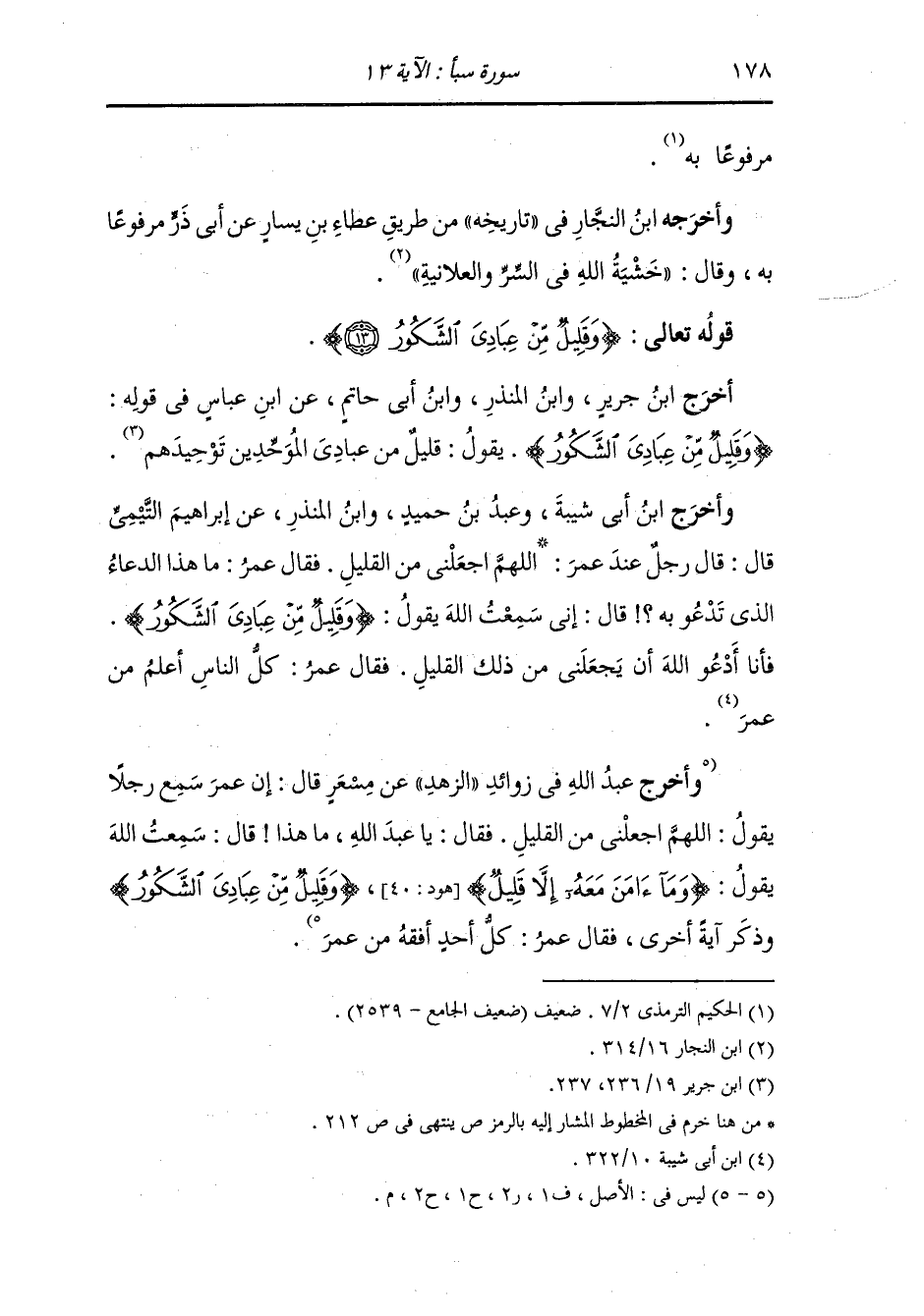 وَأخرَج ابن أبي شيبة وأحمد عن الحسن قال : قال داود عليه السلام : الهي لو أن لكل شعرة مني لسانين يسبحانك الليل والنهار والدهر كله ما قضيت حق نعمة واحدة من نعمك علي.