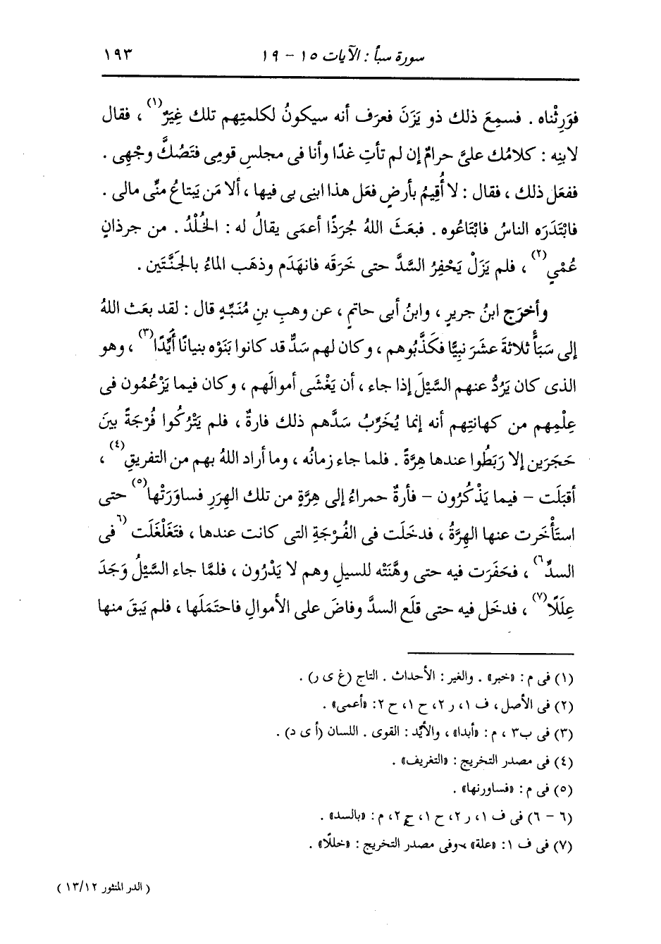 وأخرج ابن المنذر عن عكرمة رضي الله عنه في قوله {لقد كان لسبإ} ، قال : كان لهم مجلس مشيد بالمرمر فأتاهم ناس من النصارى فقالوا : أشكروا الله الذي أعطاكم هذا قالوا : ومن أعطاناه إنما كان لآبائنا