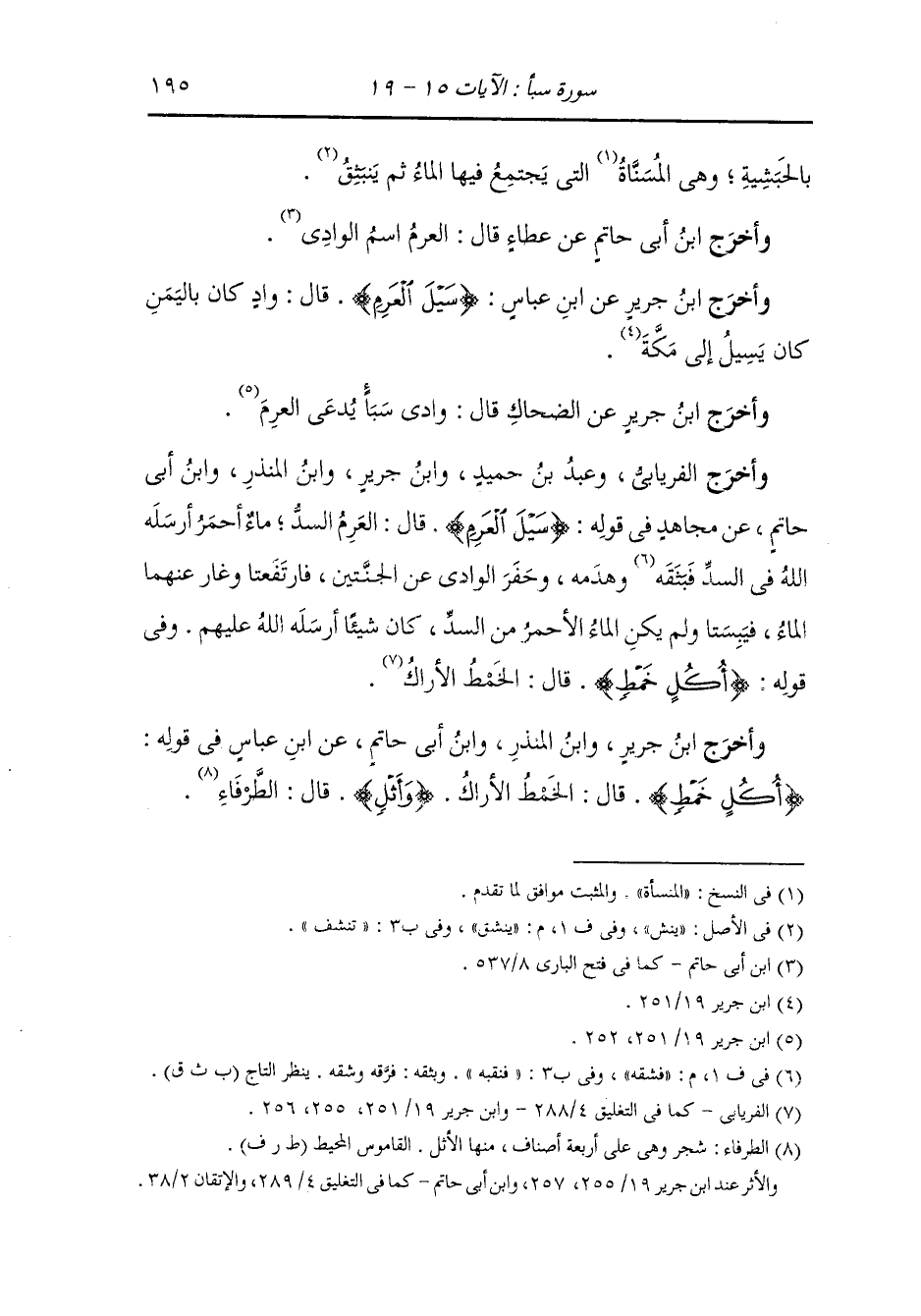 وأخرج سعيد بن منصور ، وعَبد بن حُمَيد ، وَابن جَرِير ، وَابن المنذر عن عمرو بن شرحبيل رضي الله عنه {سيل العرم} قال : المنساة بلحن اليمن.