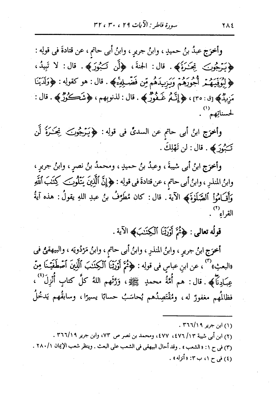 أَخرَج عبد الغني بن سعيد الثقفي في تفسيره عن ابن عباس ، أن حصين بن الحارث بن عبد المطلب بن عبد مناف القرشي نزلت فيه {إن الذين يتلون كتاب الله وأقاموا الصلاة} الآية.