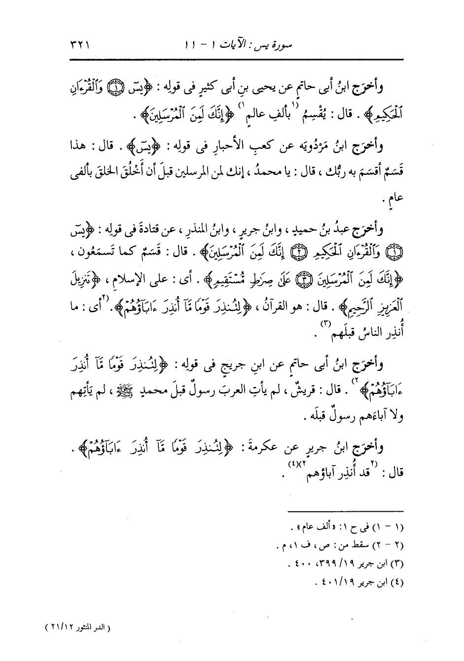 وأخرج ابن أبي شيبة ، وعَبد بن حُمَيد ، وَابن جَرِير ، وَابن المنذر ، وَابن أبي حاتم من طرق عن ابن عباس في قوله {يس} قال : يا إنسان.