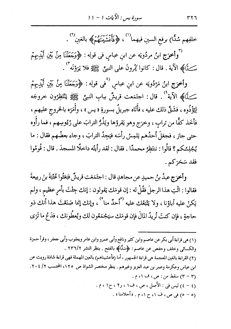 وأخرج عَبد بن حُمَيد عن عاصم أنه قرأ وجعلنا من بين أيديهم سدا ومن