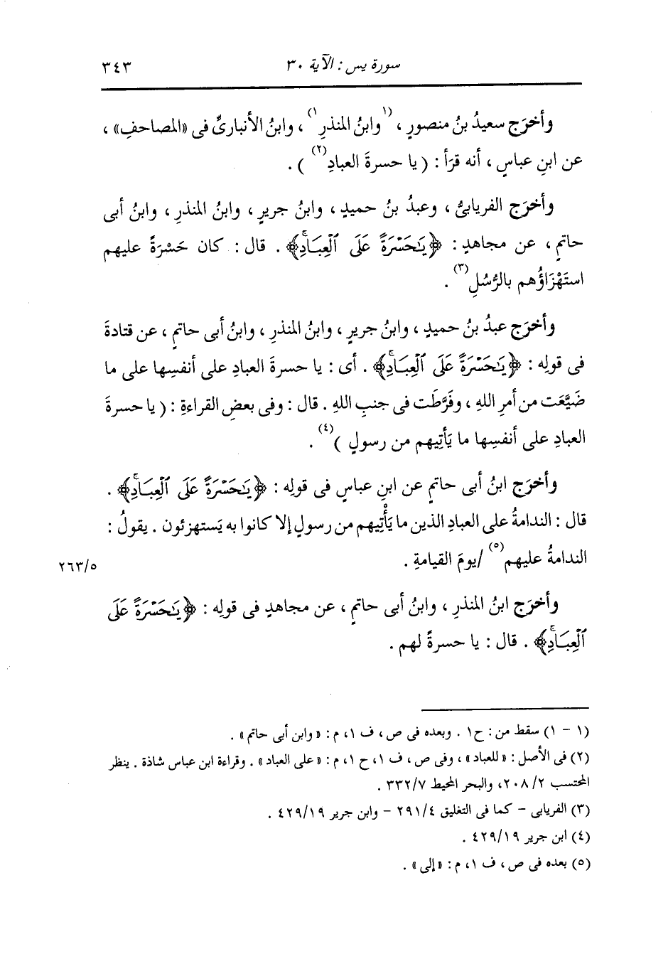 أخرج ابن المنذر ، وَابن أبي حاتم عن ابن عباس في قوله {يا حسرة على العباد} يقول : يا ويلا للعباد.