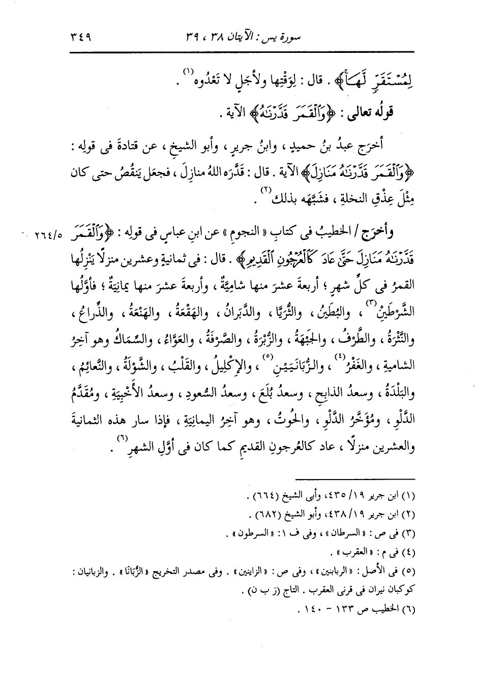 وأخرج عَبد بن حُمَيد ، وَابن جَرِير ، وَابن أبي حاتم ، وَابن الأنباري في المصاحف عن قتادة رضي الله عنه في قوله {والشمس تجري