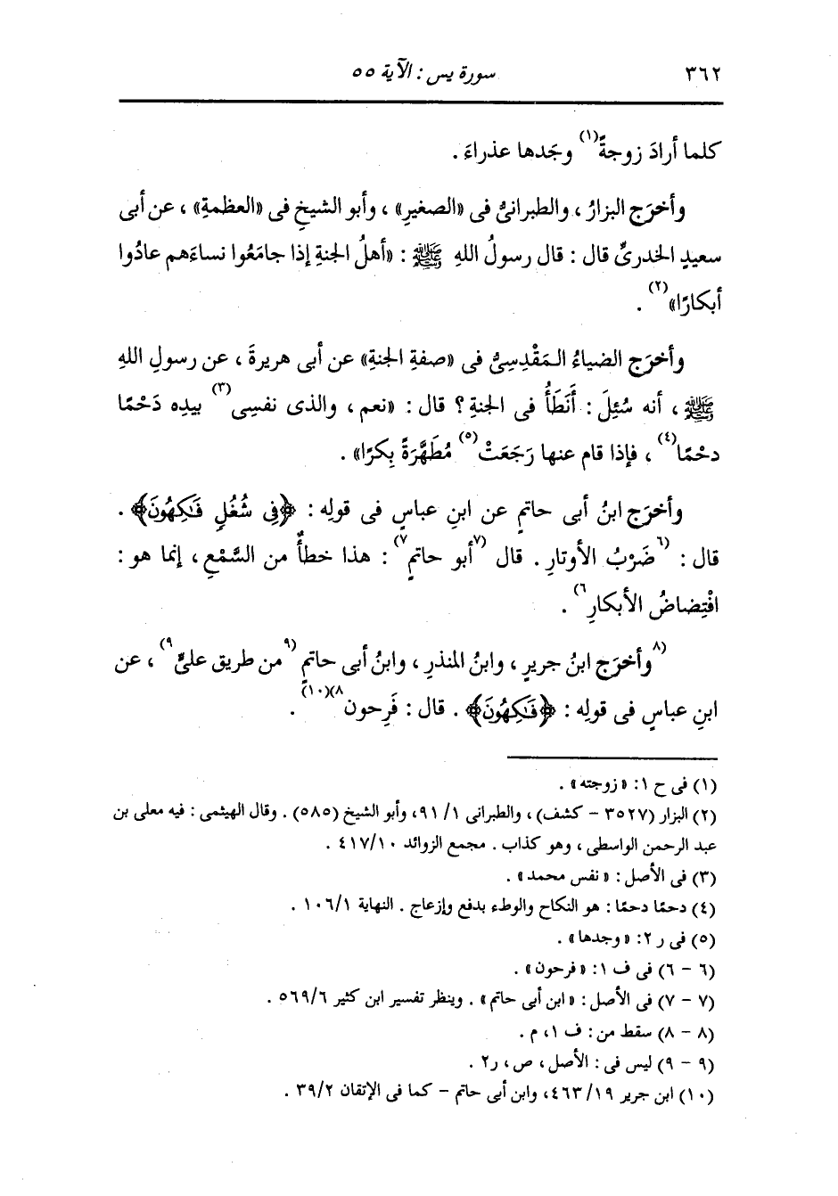 وأخرج ابن أبي شيبة ، وَابن أبي الدنيا في صفة الجنة ، وَابن جَرِير ، وَابن المنذر ، وَابن أبي حاتم ، وَابن مردويه من طرق عن ابن عباس رضي الله عنهما في قوله {في شغل فاكهون} قال : في افتضاض الأبكار.
