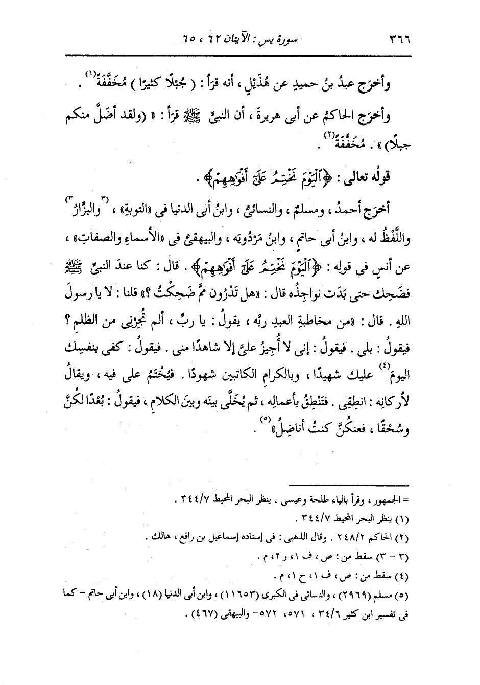 وأخرج عَبد بن حُمَيد عن عاصم رضي الله عنه أنه قرأ جبلا كثيرا بكسر الجيم مثقلة اللام أفلم يكونوا يعقلون بالياء.