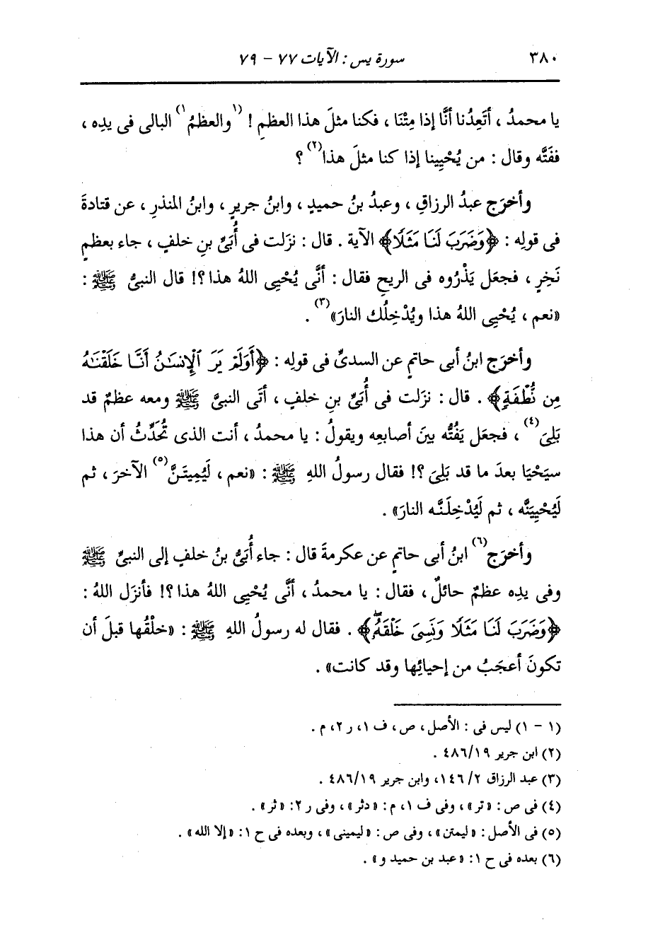 وأخرج سعيد بن منصور ، وَابن المنذر والبيهقي في البعث عن أبي مالك قال : جاء أبي بن خلف بعظم نخرة فجعل يفته بين يدي النَّبِيّ صلى الله عليه وسلم قال : من يحيي العظام وهي رميم فأنزل الله {أو لم ير الإنسان أنا خلقناه من نطفة فإذا هو خصيم مبين} إلى قوله {وهو بكل شيء عليم}.
