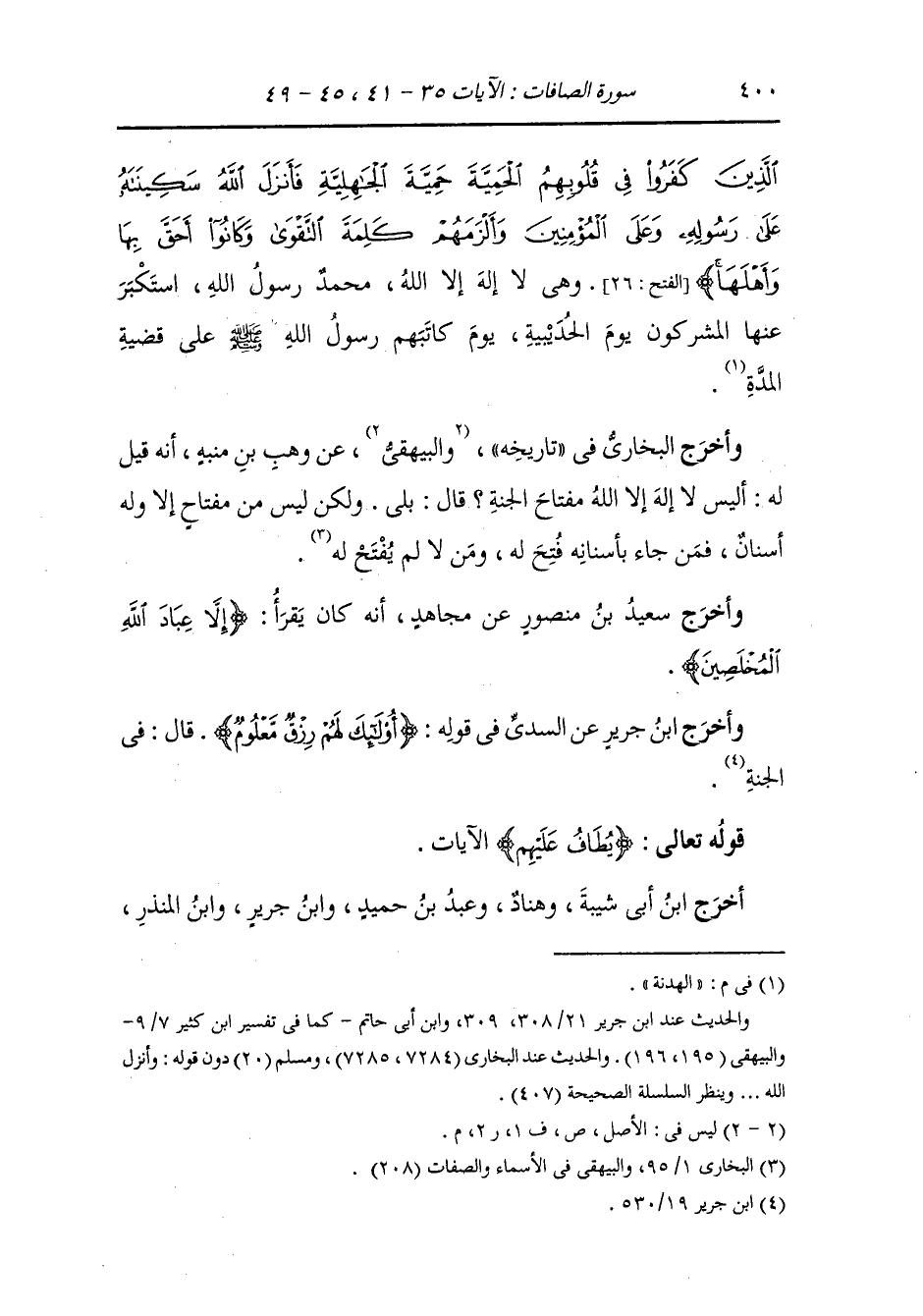 وأخرج ابن جرير ، وَابن أبي حاتم ، وَابن مردويه والبيهقي في الأسماء والصفات عن أبي هريرة رضي الله عنه قال : قال رسول الله صلى الله عليه وسلم : أمرت أن أقاتل الناس حتى يقولوا لا إله إلا الله فمن قال لا إله إلا الله فقد عصم مني ماله ونفسه إلا بحقه وحسابه على الله ، وأنزل الله في كتابه وذكر قوما استكبروا فقال {إنهم كانوا إذا قيل لهم لا إله إلا الله يستكبرون} وقال (إذ جعل