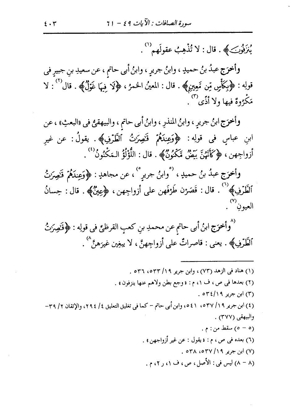 وَأخرَج ابن جرير عن ابن عباس رضي الله عنهما {لا فيها غول} قال : هي الخمر ليس فيها وجع بطن.
