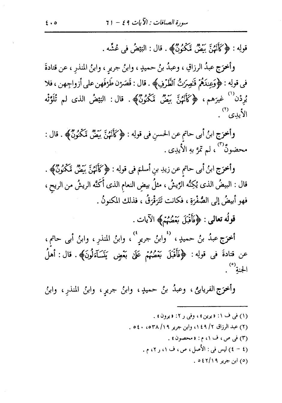 وأخرج ابن أبي شيبه ، وَابن جَرِير ، وَابن المنذر ، وَابن أبي حاتم عن سعيد بن جبير رضي الله عنه في قوله {كأنهن بيض مكنون} قال : كأنهن بطن البيض.