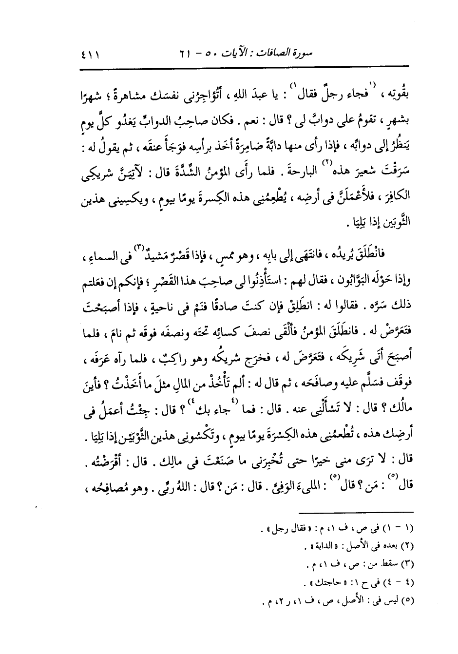 بألف دينار يقومون لي ويعملون لي فيها ، فقال المؤمن : أو فعلت قال : نعم ، فرجع المؤمن حتى إذا كان الليل صلى ما شاء الله أن يصلي فلما انصرف أخذ ألف دينار فوضعا بين يديه ثم قال : اللهم إن فلانا اشترى رقيقا من رقيق الدنيا بألف دينار يموت غدا فيتركهم أو يموتون فيتركونه اللهم وإني أشتري منك بهذه الألف دينار رقيقا في الجنة ، ثم أصبح فقسمها بين المساكين ، ثم مكثا ما شاء الله أن يمكثا ثم التقيا فقال الكافر للمؤمن : ما صنعت في مالك أضربت به في شيء أتجرت به في شيء قال : لا ، فما صنعت أنت قال : كان أمري كله قد تم إلا شيئا واحدا فلانة مات عنها زوجها فأصدقتها ألف دينار فجاءتني بها وبمثلها معها فقال له المؤمن : أو فعلت قال : له نعم ، فرجع المؤمن حتى إذا كان الليل صلى ما شاء الله أن يصلي فلما انصرف أخذ الألف دينار الباقية فوضعها بين يديه وقال : اللهم إن فلانا تزوج زوجة من أزواج الدنيا بألف دينار ويموت عنها فيتركها أو تموت فتتركه اللهم وإني أخطب إليك بهذه الألف دينار حوراء عيناء في الجنة ، ثم أصبح فقسمها بين المساكين فبقي المؤمن ليس عنده شيء.